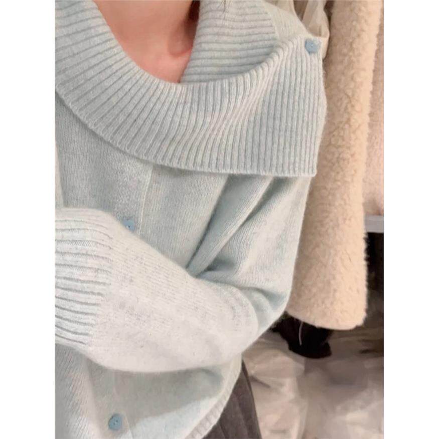 设计感独特灰色翻领羊毛针织衫女早秋chic别致不规则短款开衫上衣