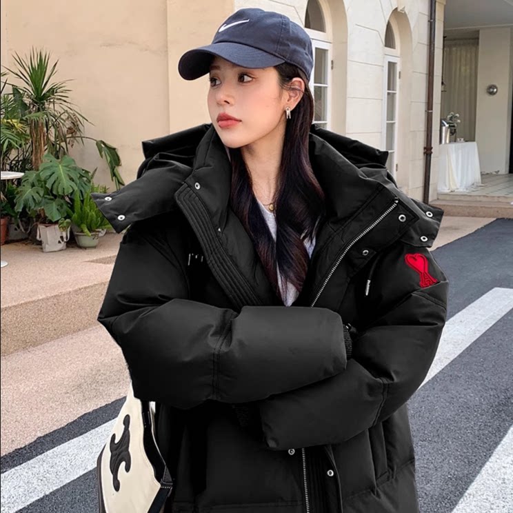 爱心长款棉服2024年新款男女羽绒服情侣设计感面包服大码棉衣外套