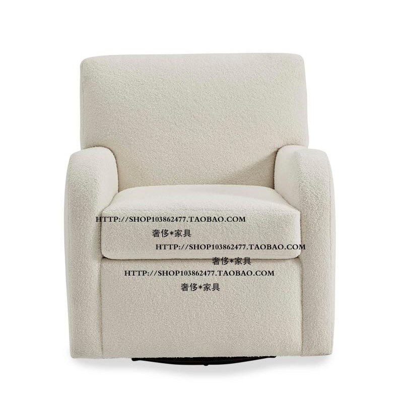 北欧美式实木布艺羊羔绒单人位沙发椅洽谈椅交椅可旋转客厅家具