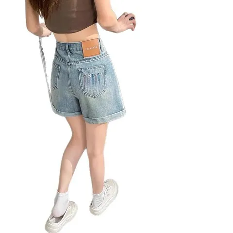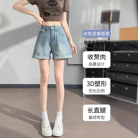 新款高腰牛仔短裤女薄款复古显瘦三分热裤2025夏季a字浅蓝色卷边