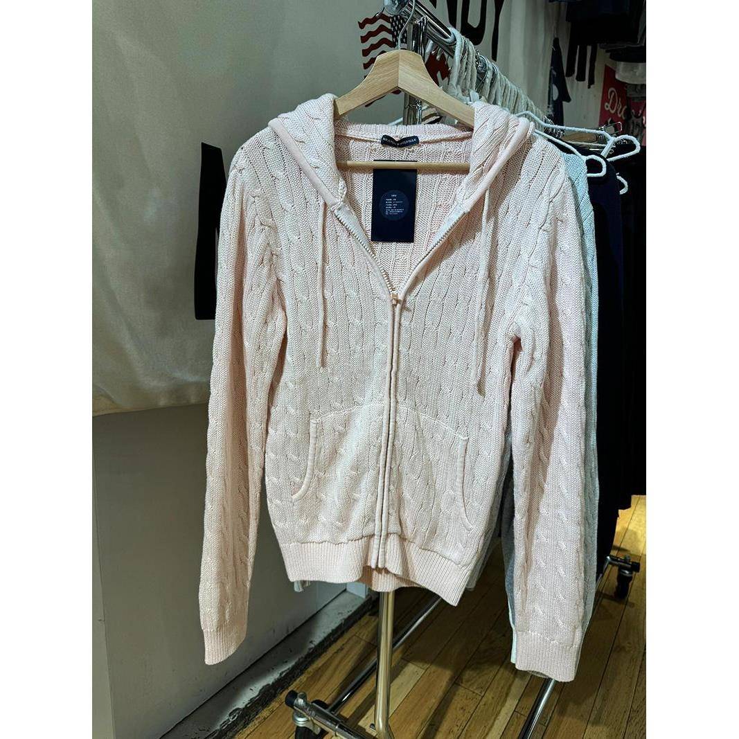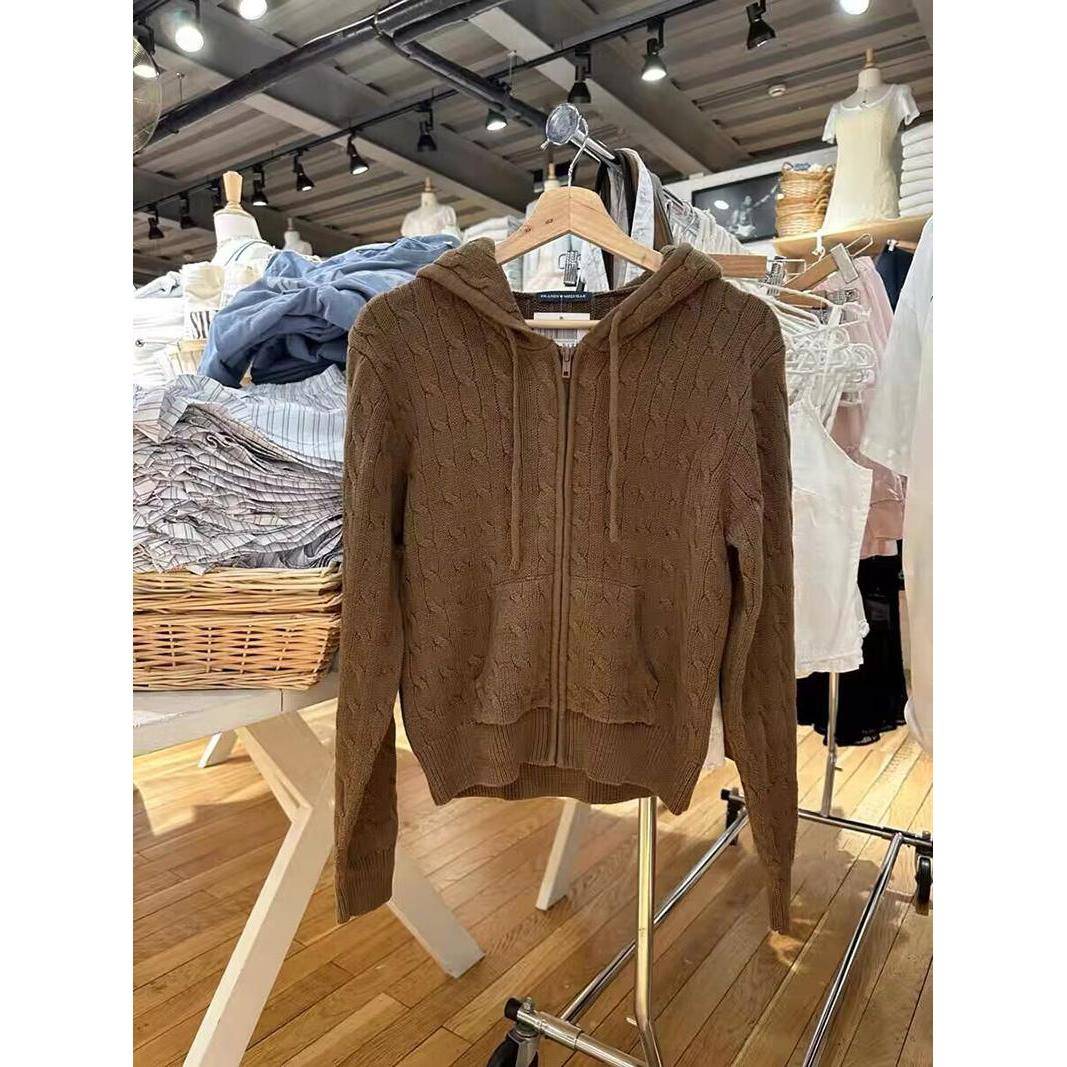 BM官网秋冬新款浅粉麻花连帽开衫毛衣bm百搭拉炼外套针织上衣女潮