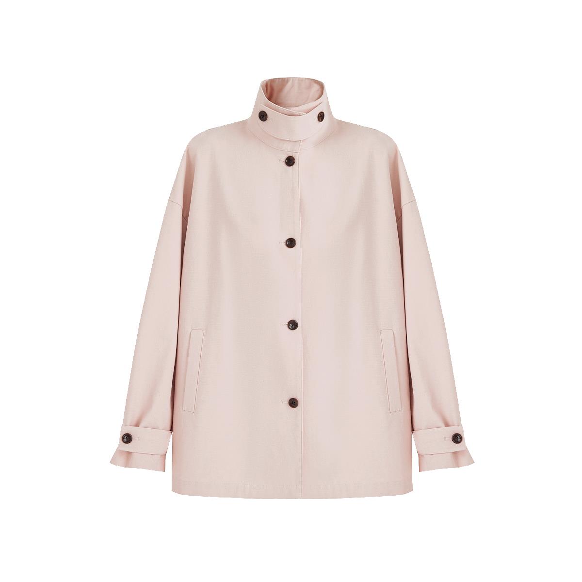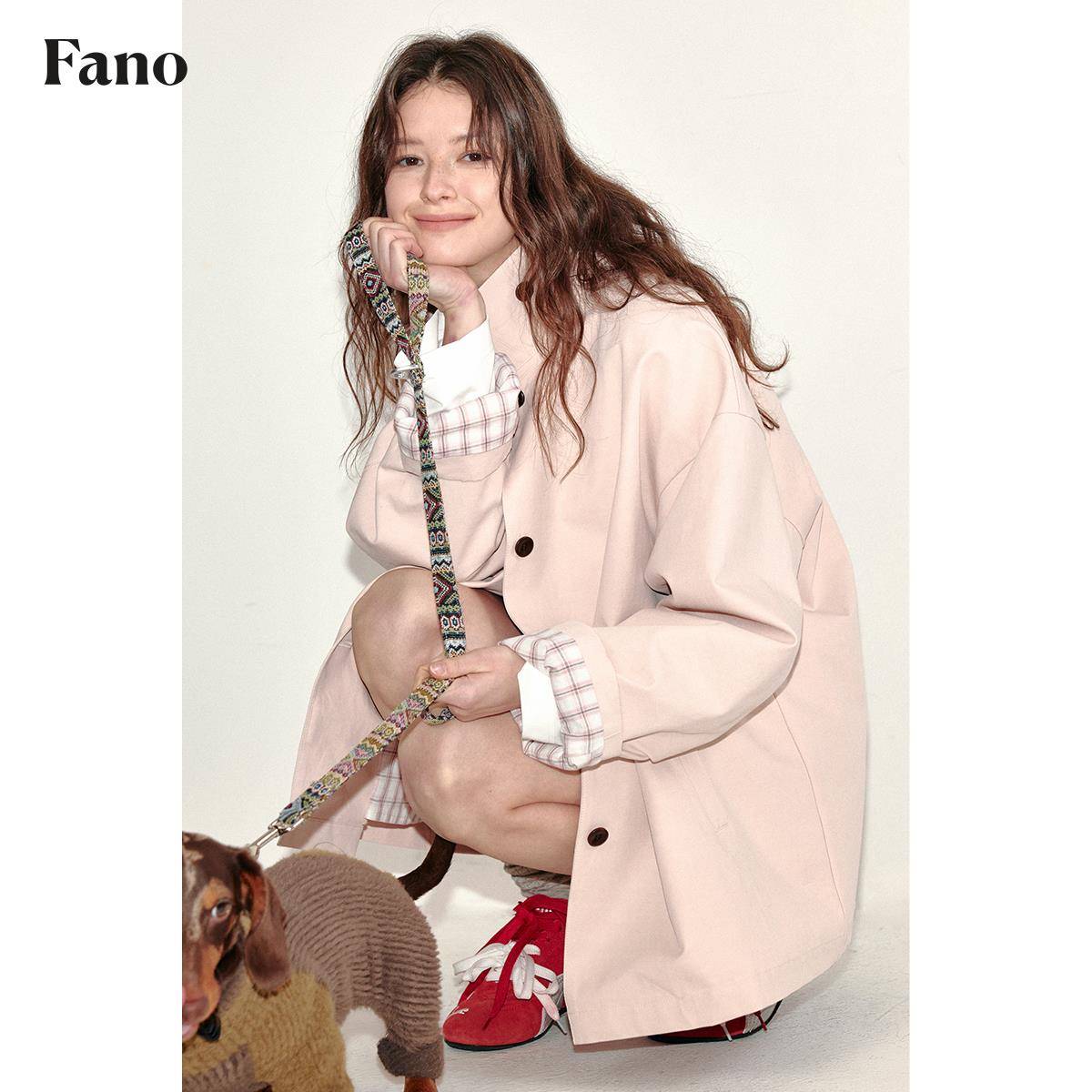 范洛Fano 奶油蜜桃粉袖里撞格短款风衣外套女设计感小个子春新款