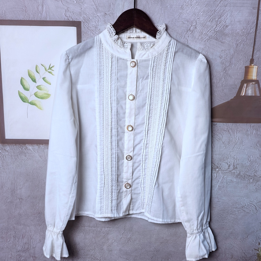 古着Vintage女士碎花纯色文艺学院女软妹日系长短袖衬衫Y618