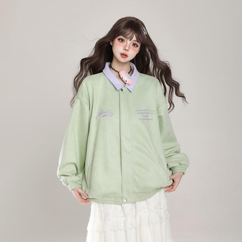 春季麂皮绒棒球服外套女生秋冬2025新款韩系甜妹穿搭休闲宽松夹克