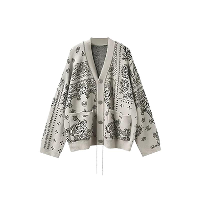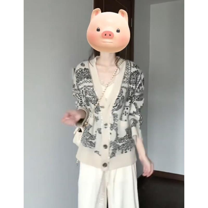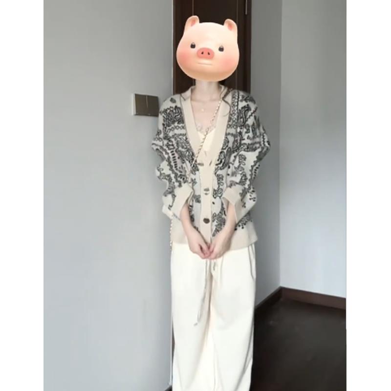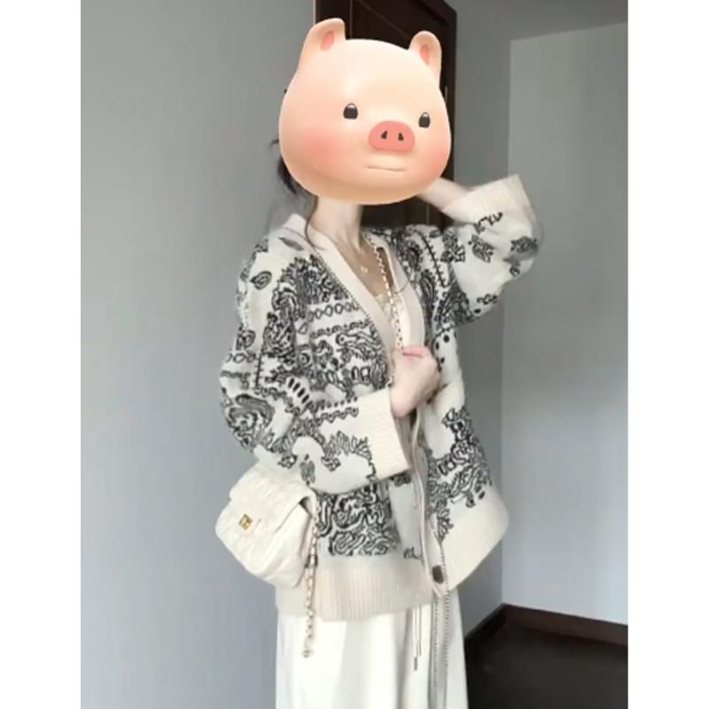 重工浣熊绒画 画艺提花针织开 衫女秋冬加厚宽松慵懒风高级感毛衣