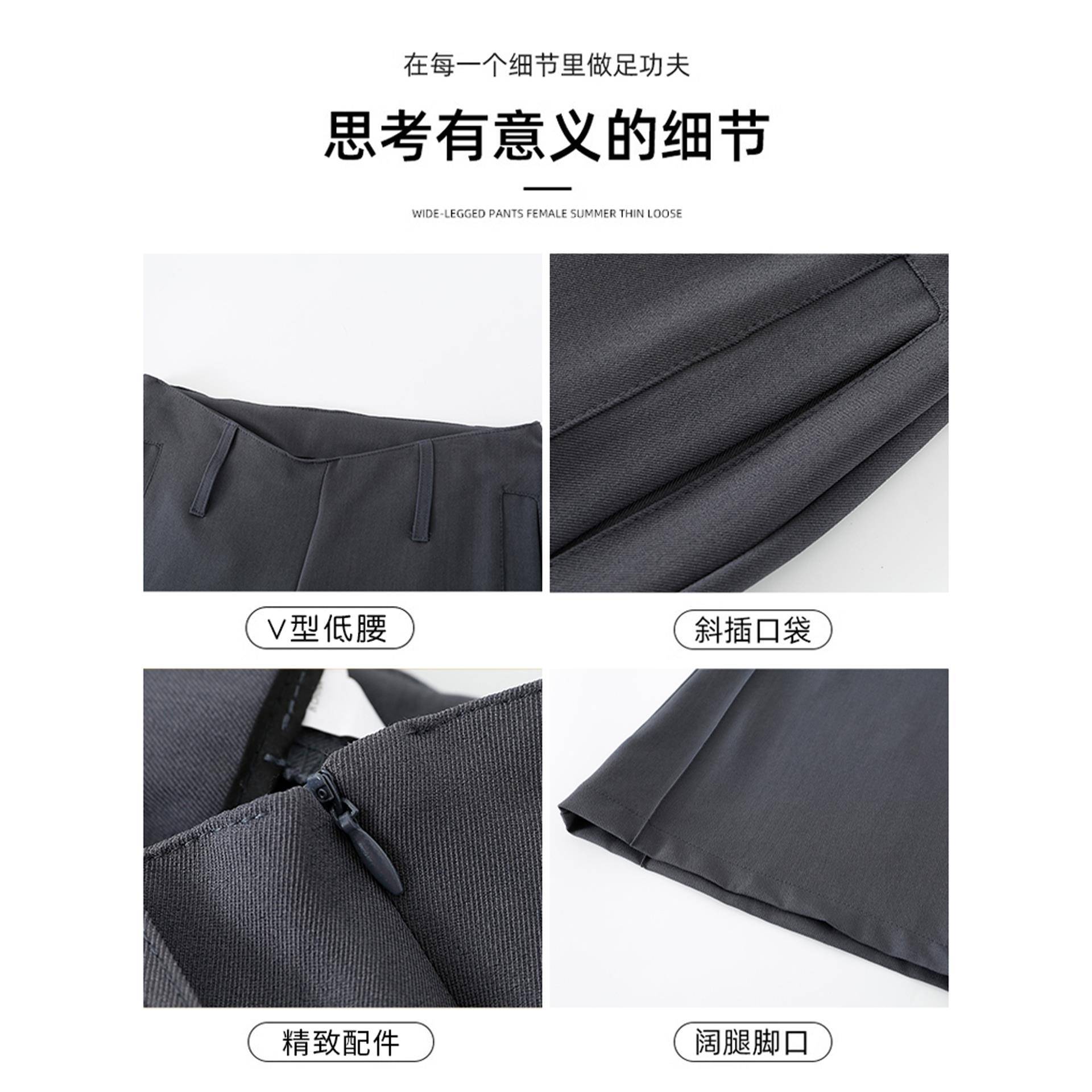 灰色美式V型低腰微喇西装裤女春秋季宽松垂感不贴腿拖地阔腿裤子