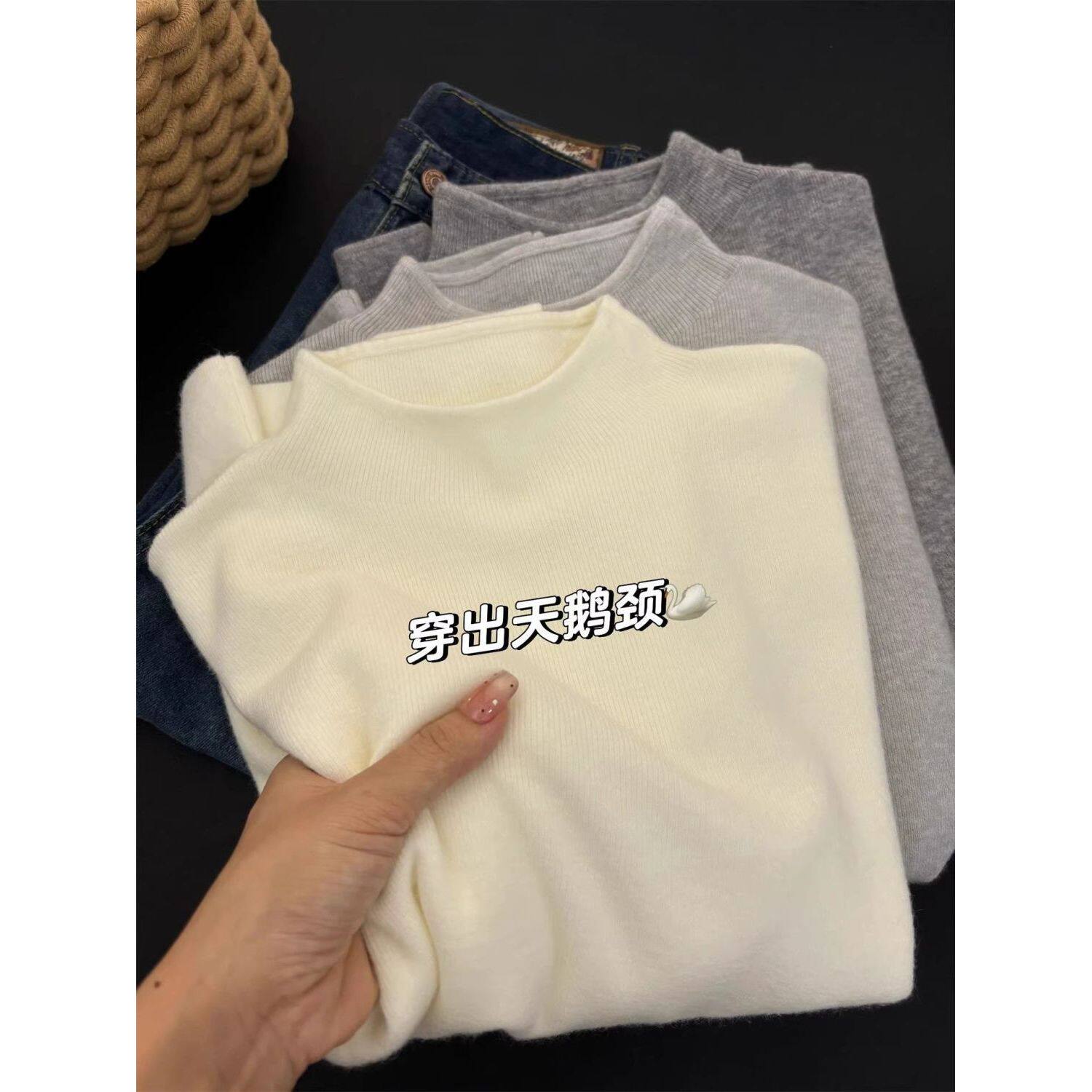 秋冬小立领奶fufu软糯打底针织衫大码胖mm女毛衣韩版简约内搭上衣