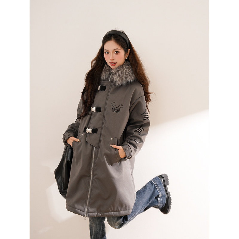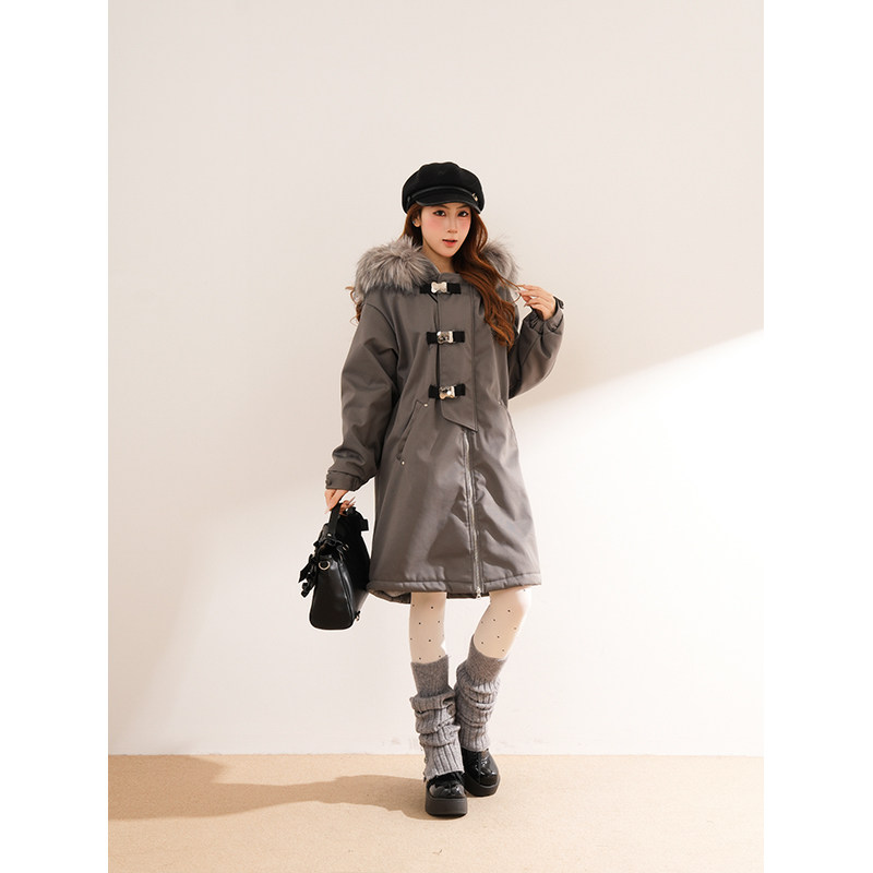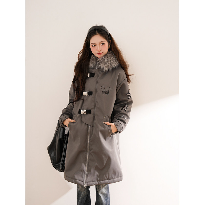 【灰调影映】派克服气质小众设计休闲穿搭冬季中长款连帽拉链外套