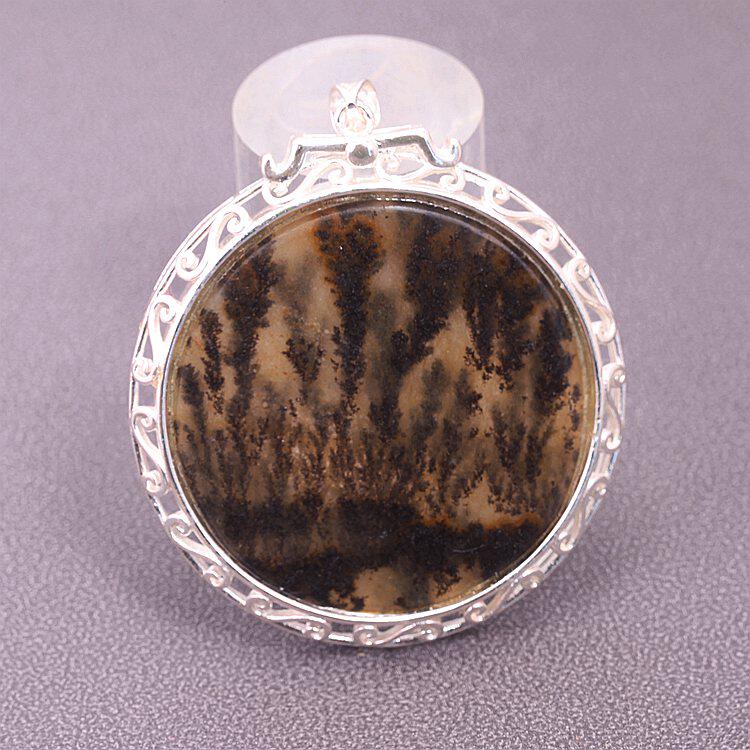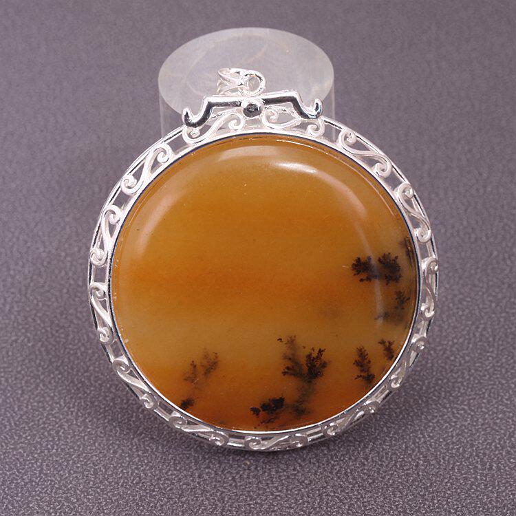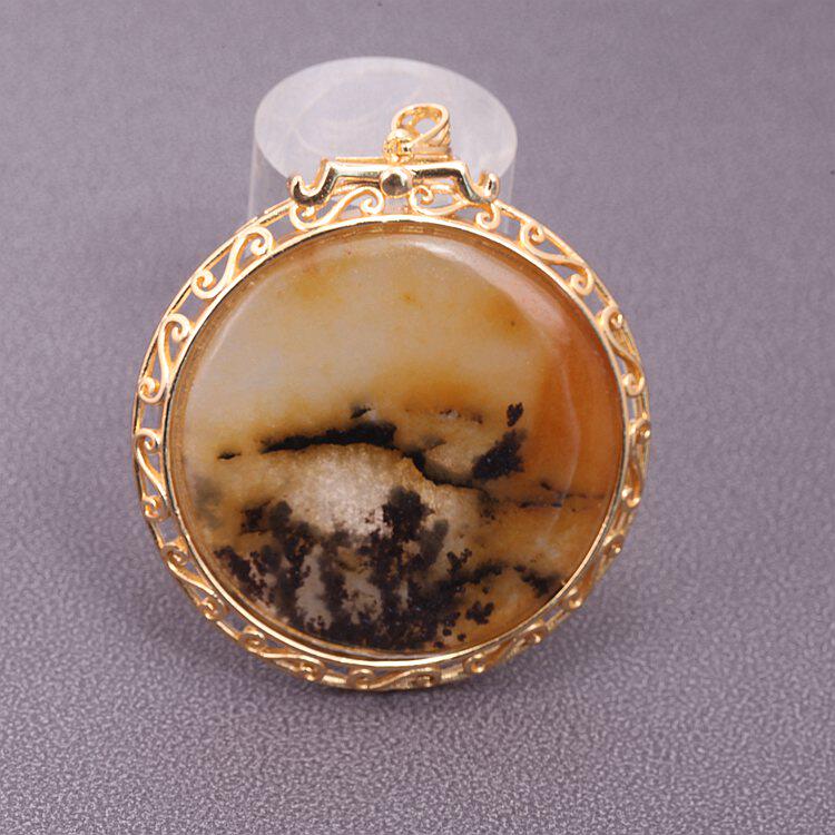云南龙陵石缘 天然玉石黄龙玉水草花 镶嵌草花 圆形牌子吊坠挂件