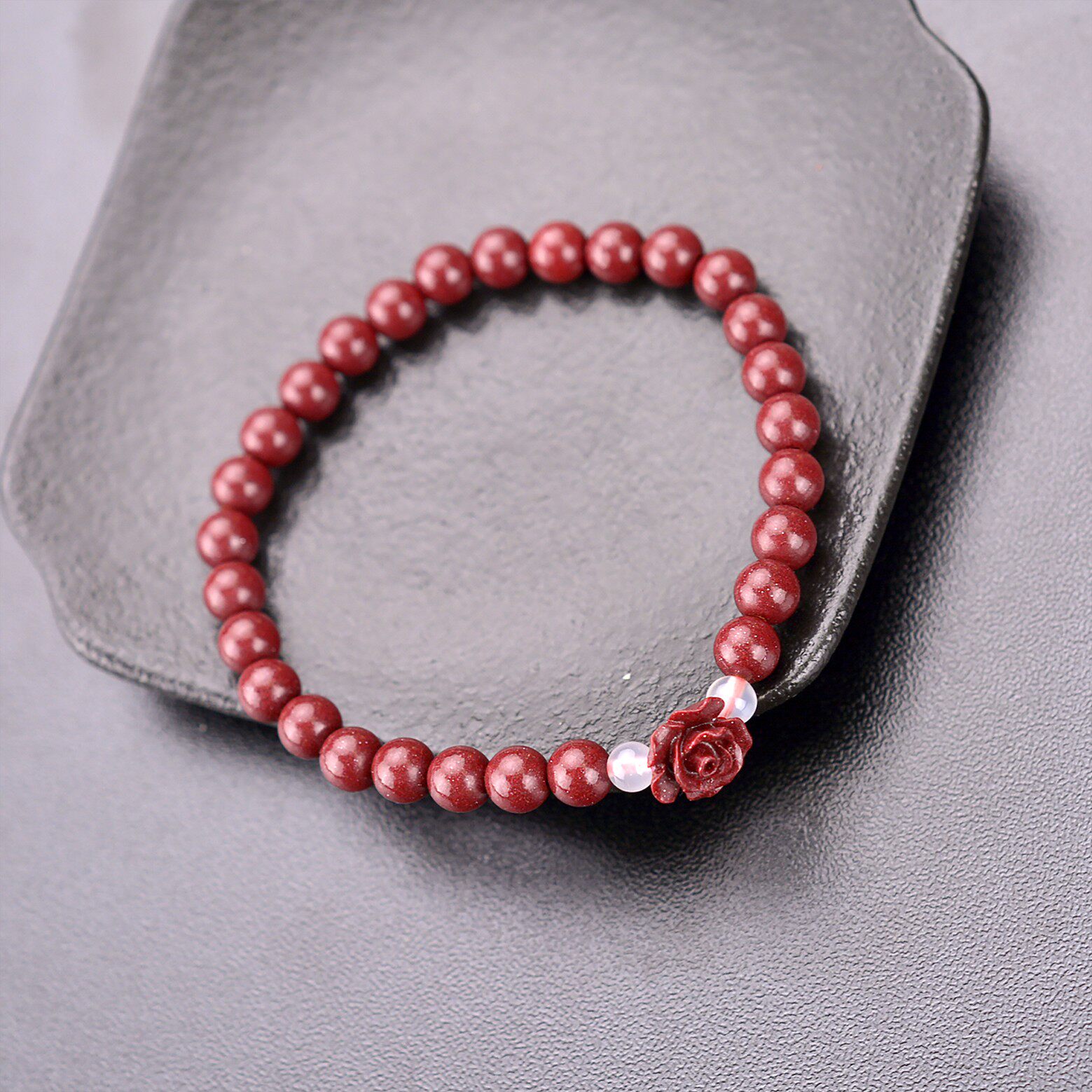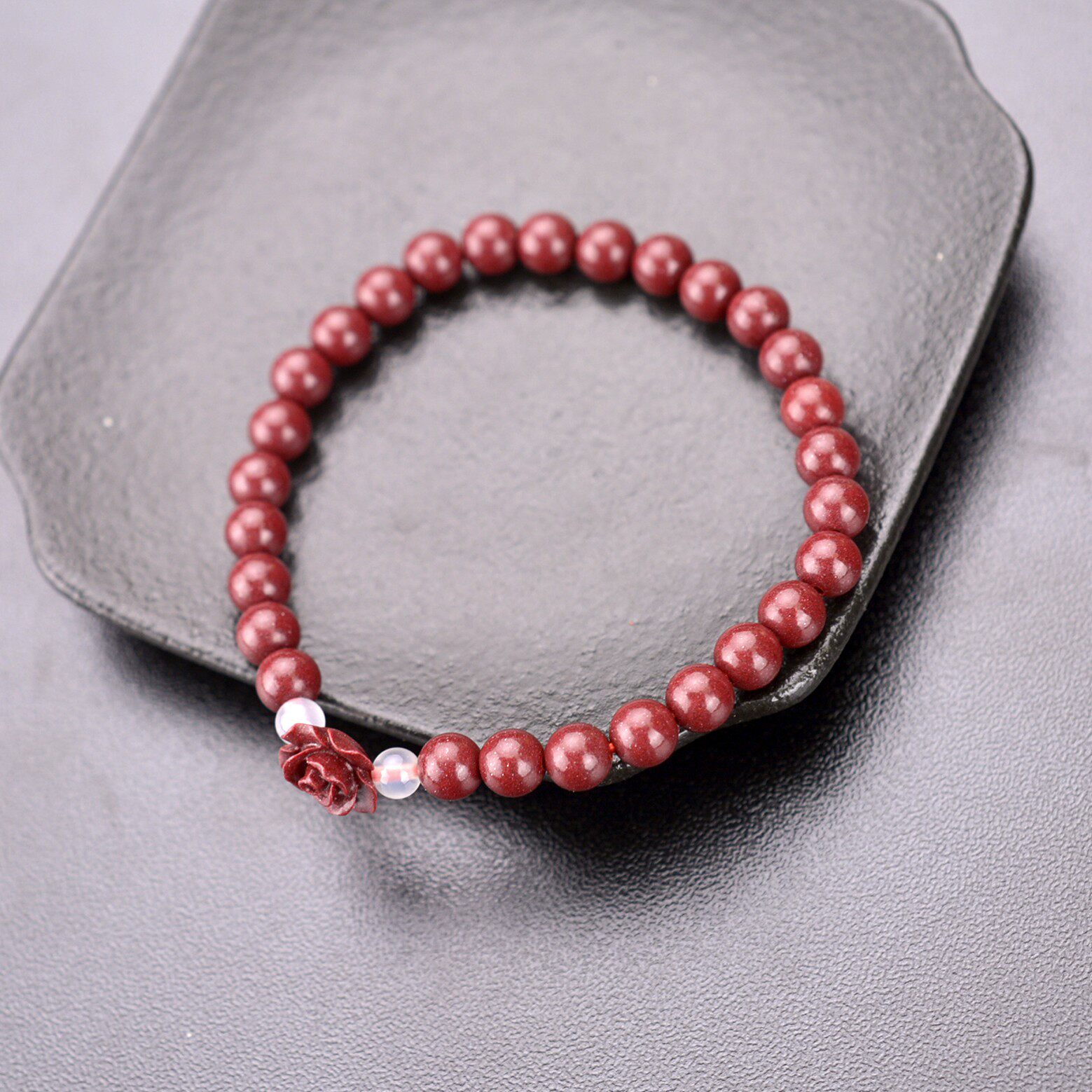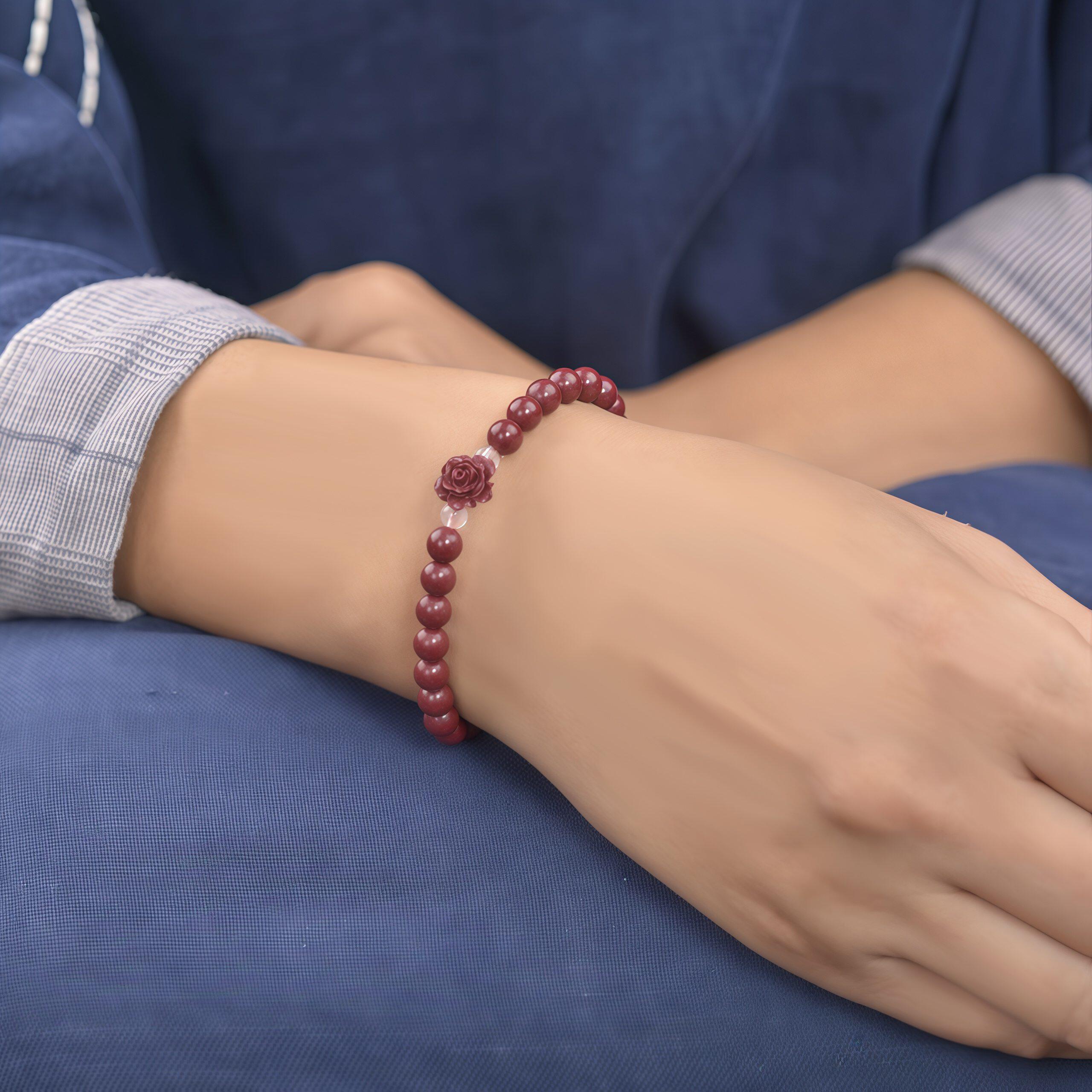 首页> 配饰> 天然原矿朱砂玫瑰手链辰砂女本命年紫金沙手饰手串念珠