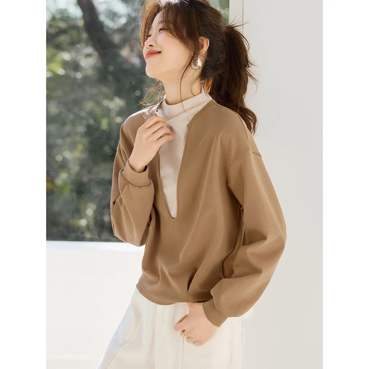 休闲设计感假两件拼接半高领卫衣2025秋季新款设计感卫衣