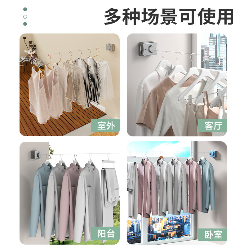 隐形晾衣绳晾衣服神器绳子室内免打孔卫生间隐形伸缩阳台钢丝绳架