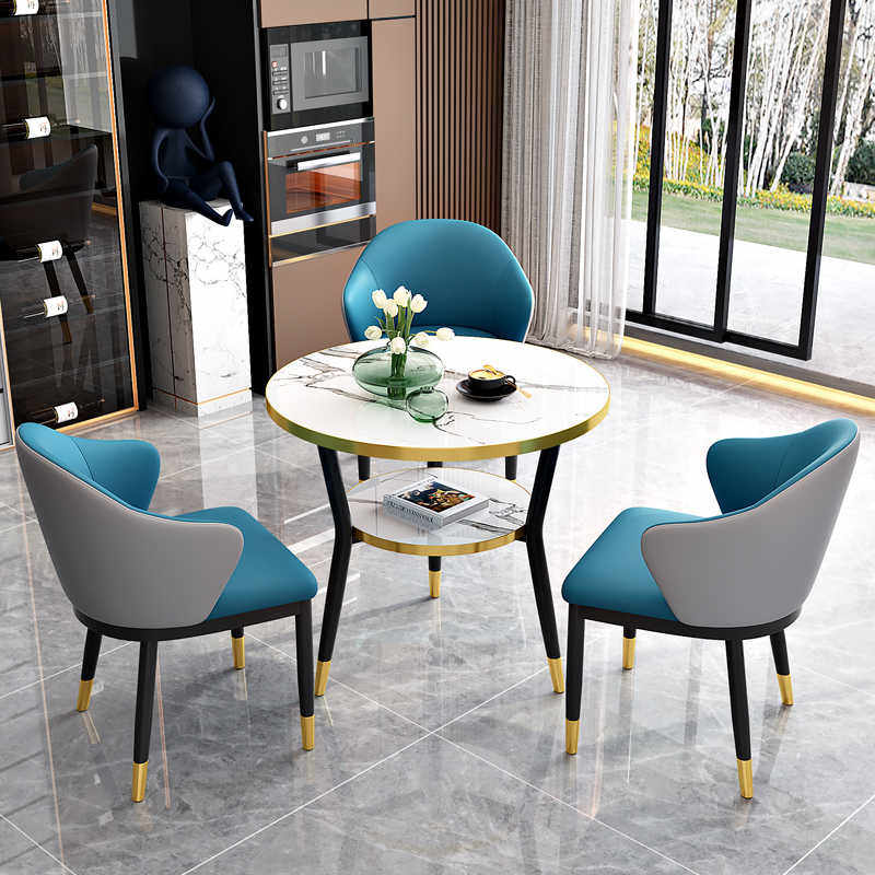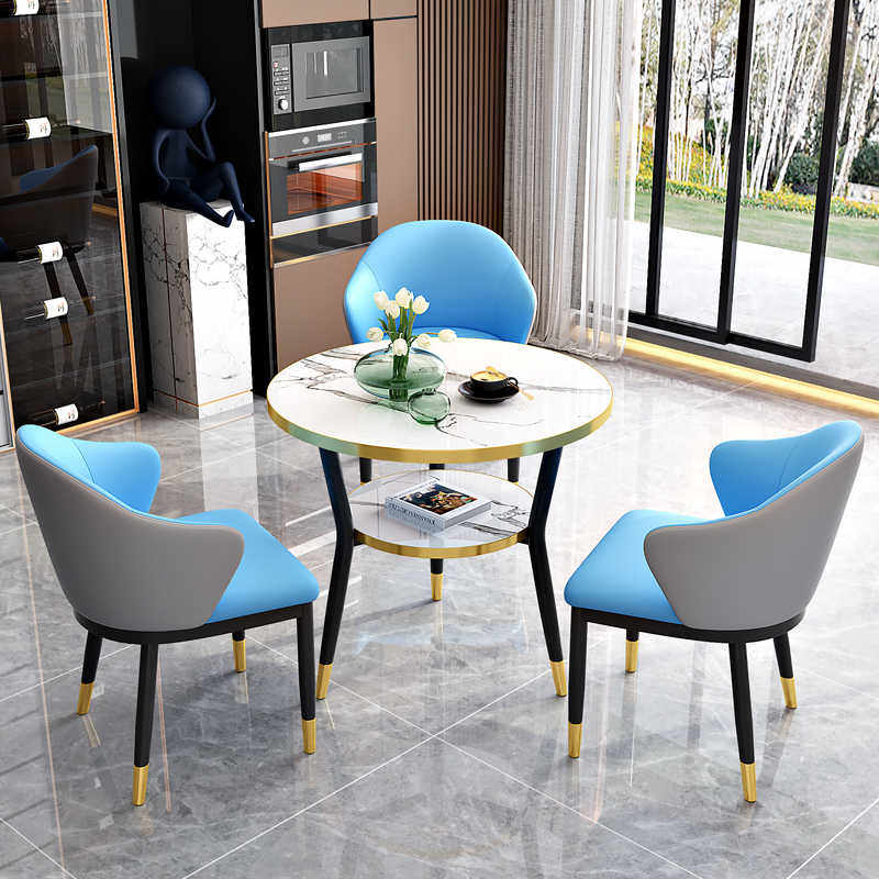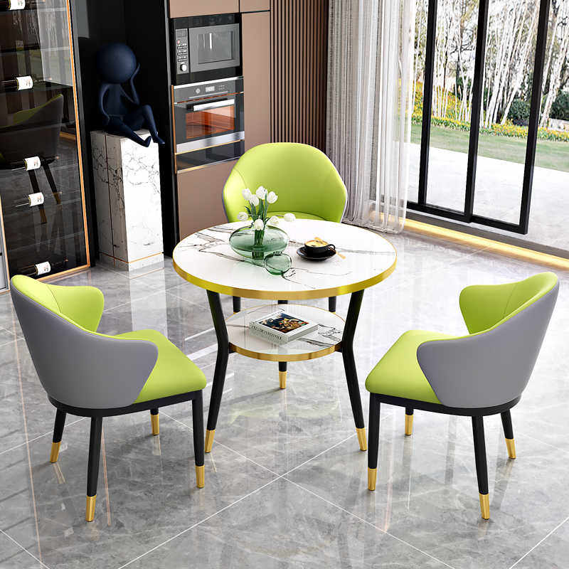 岩板洽谈桌椅组合接待桌轻奢小圆桌阳台休闲小桌椅咖啡奶茶店