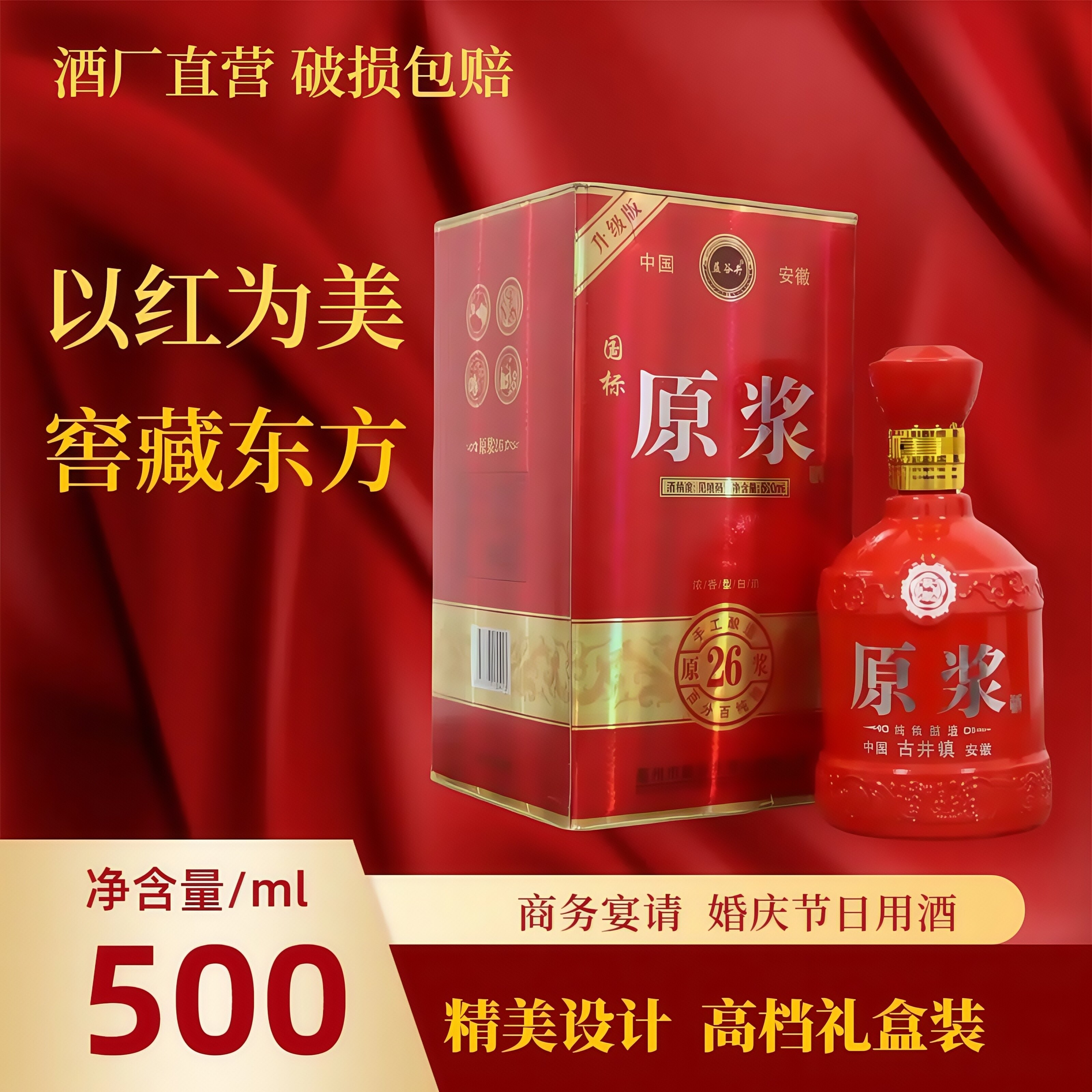 古井浓香型原浆26特价整箱500ml*6瓶纯粮酒红瓶婚宴节日送礼用酒