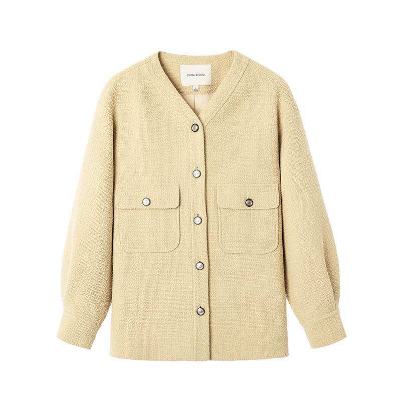 EKOOL衣库 韩系高级感编织小香风外套女春季新款宽松显瘦V领上衣