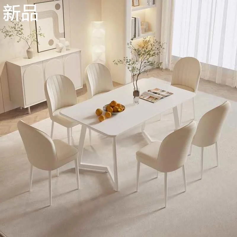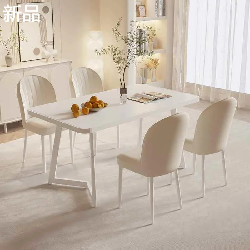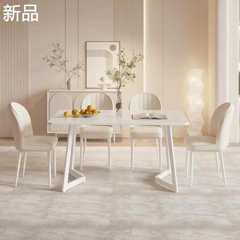 法式奶油风纯白餐桌小户型家用轻奢简约饭桌子长方形出租房餐桌椅