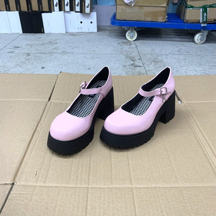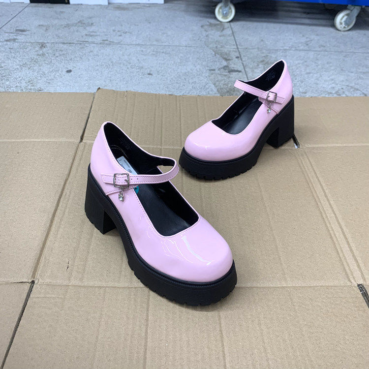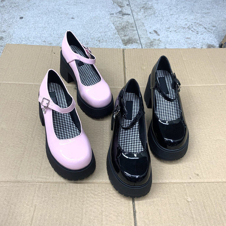 外贸原单粗跟厚底高跟松糕底学院英伦风浅口一字扣带时尚玛丽珍鞋