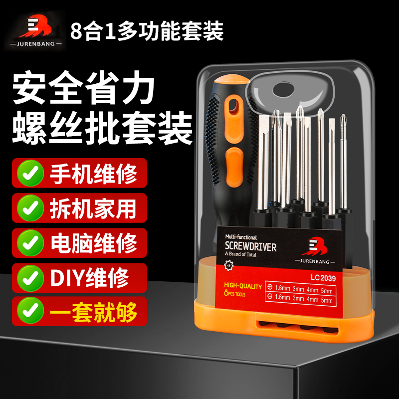 八合一螺丝批十字一字起子梅花螺丝刀小平口家用组合工具套装两用