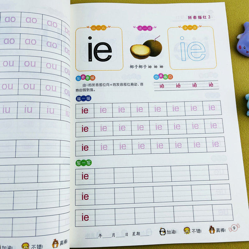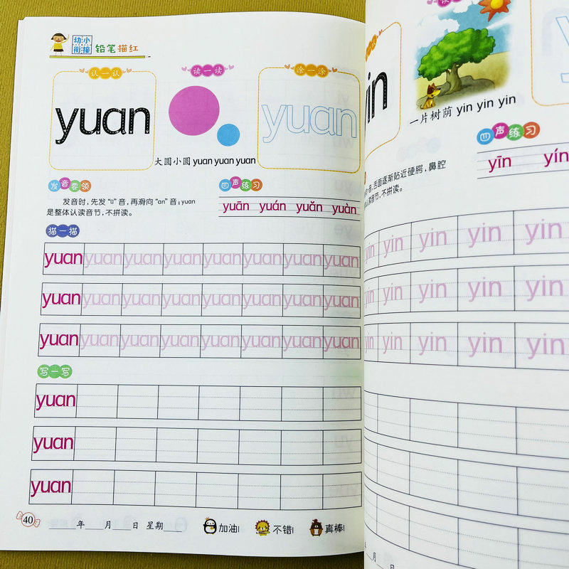 拼音描红2练习册复韵母整体认读音节幼儿园学前班大班升一年级练字帖描红本3-6岁拼音教材天天练幼小衔接一日一练铅笔描红规范书写