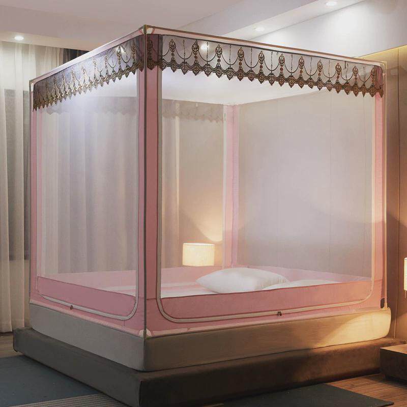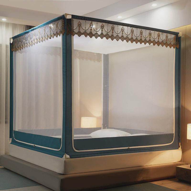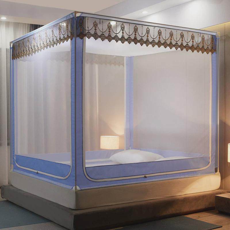 直播爆款三开底坐床蚊帐带支架1米5床需安装家用回门卧室防摔帐子