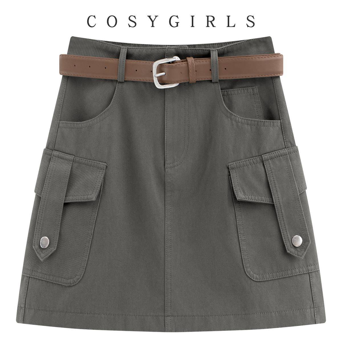 高腰a字半身裙女2025夏季新款韩版百搭黑色工装裙酷飒风包臀短裙