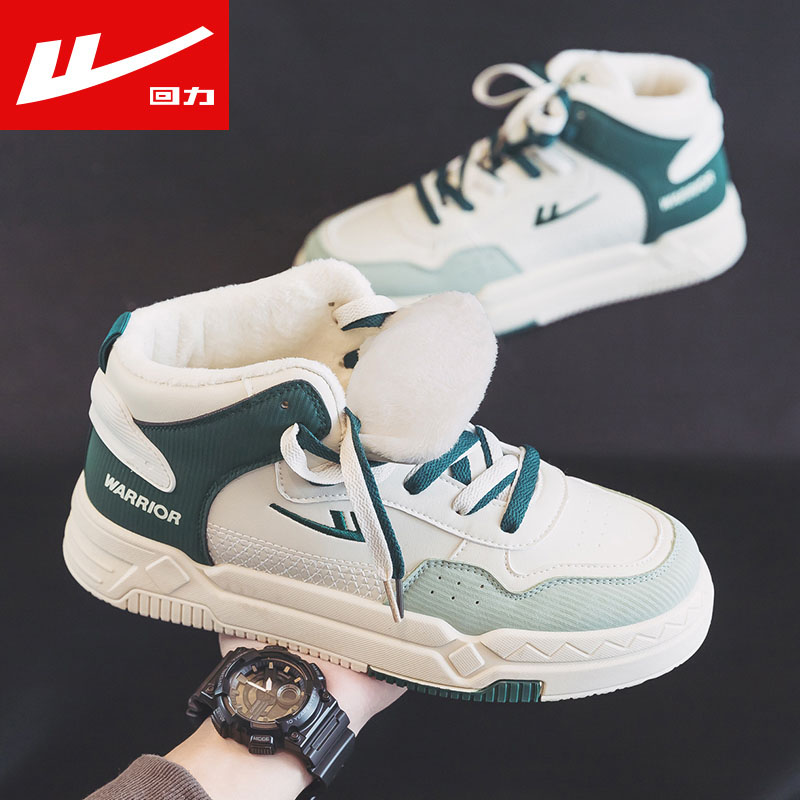 回力加绒高帮帆布鞋女秋冬季新款加厚保暖棉鞋学生百搭二棉鞋男士