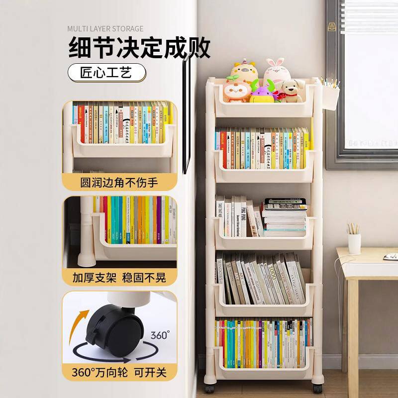 书架落地置物架一体靠墙墙边小窄储物柜儿童移动学生家用简易