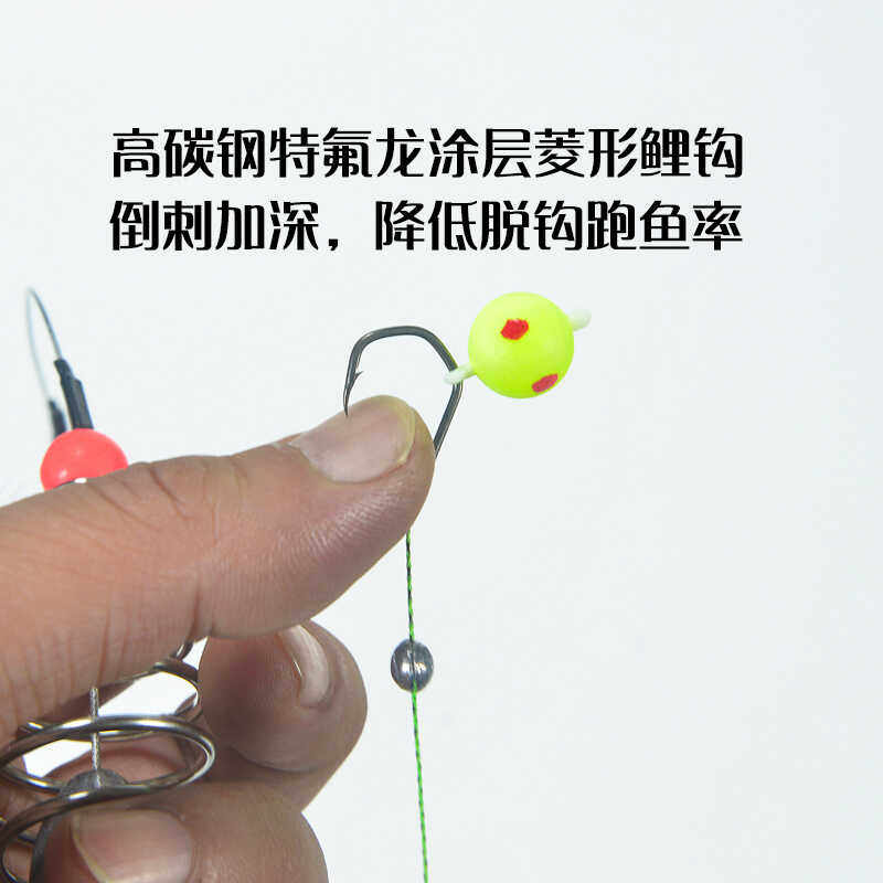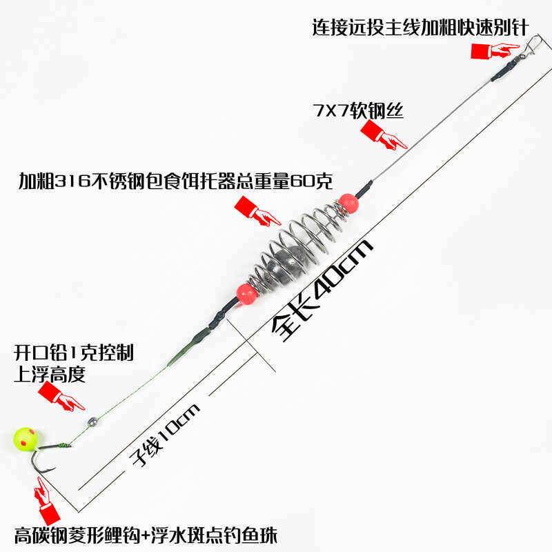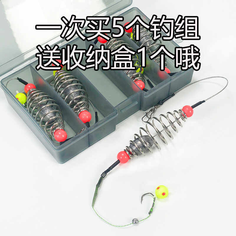 反底钓法浮水钓鱼珠钓组弹簧钩管付有倒刺鱼钩子线一体成品欧鲤钓