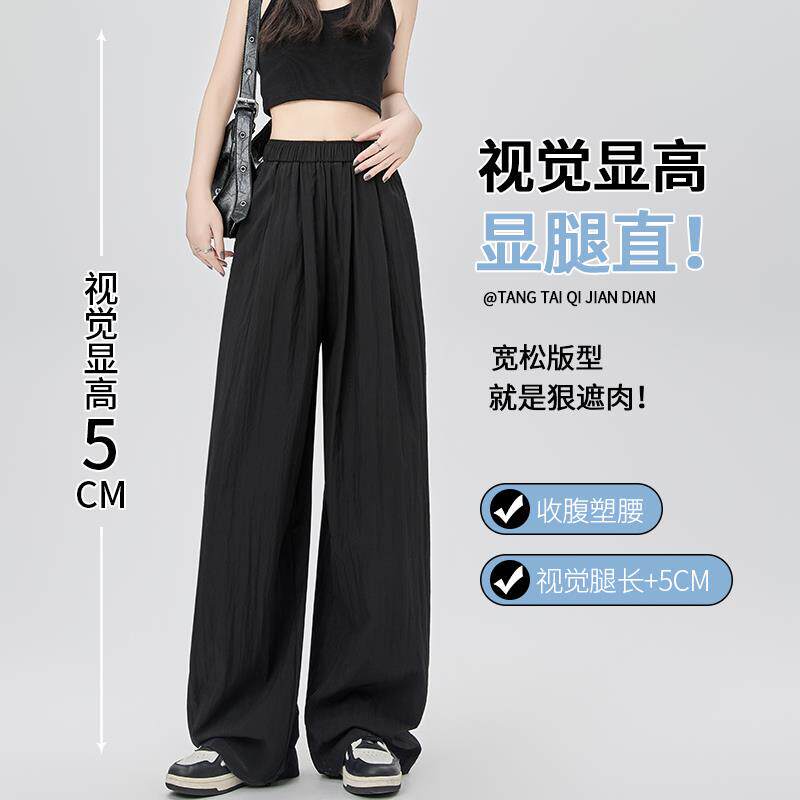 山本裤子女夏季薄款高腰垂感2024新款宽松亚麻休闲冰丝阔腿凉凉裤