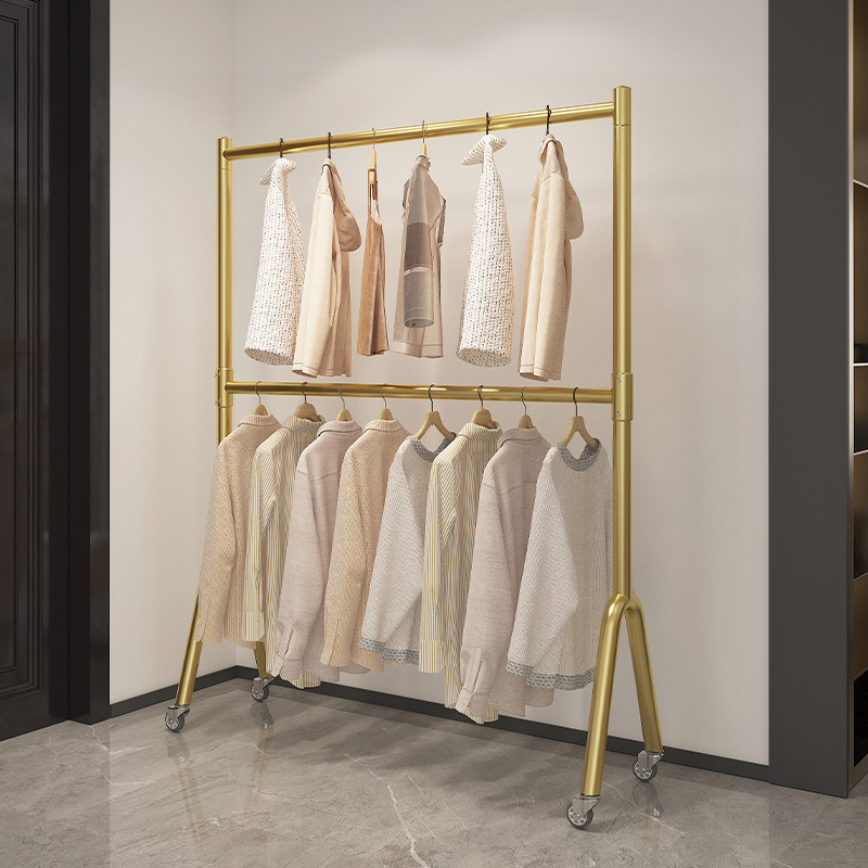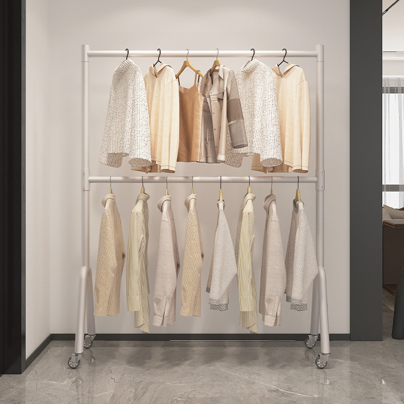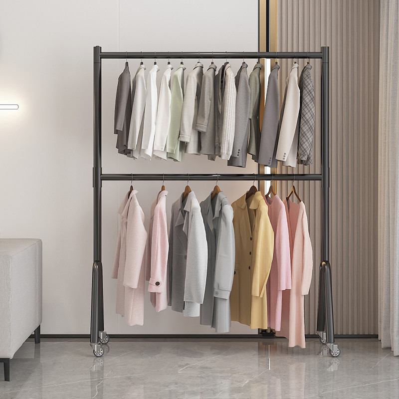双层晾衣架落地卧室内折叠衣服架家用上下多层挂衣杆两三层衣