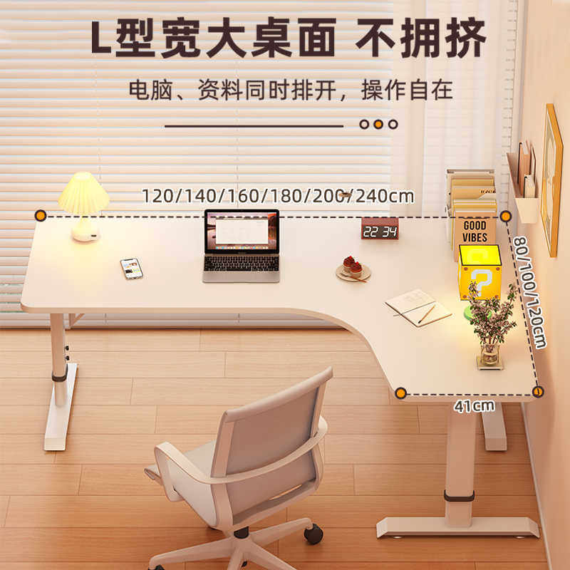 L型转角书桌家用卧室台式电脑桌子办公桌可升降拐角洞洞板学