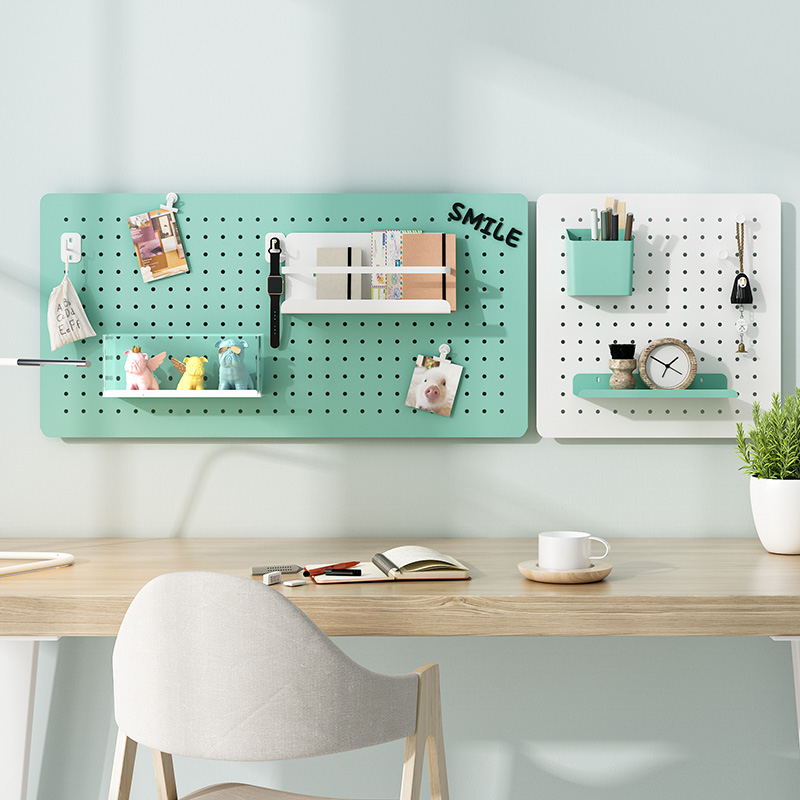 洞洞板墙上置物架免打孔办公室桌面书桌隔板挂板金属收纳墙展示架