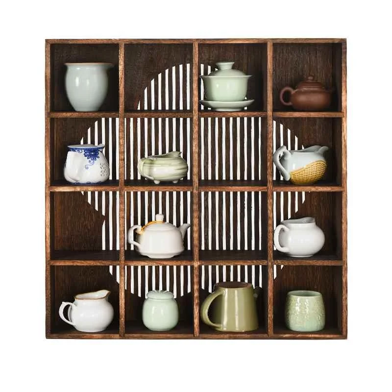 博古架挂墙置物架墙上实木中式壁挂简约多宝阁茶壶茶具摆架展新品