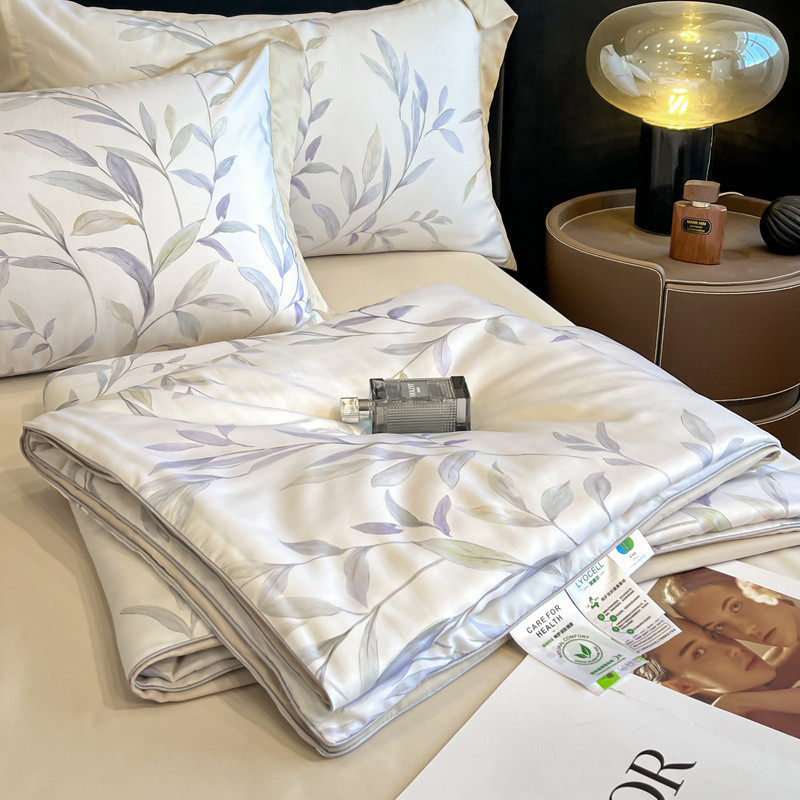 100支天丝夏凉被四件套双面冰丝凉感夏被可机洗薄被子空调水洗