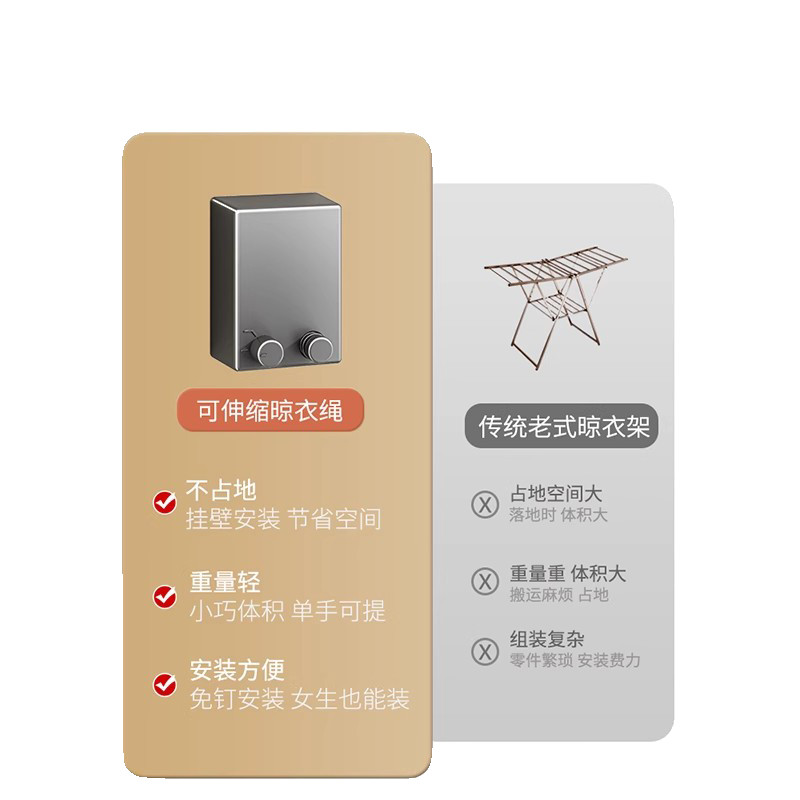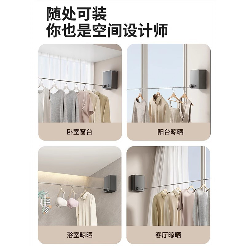 德国阳台隐形收缩晾衣绳室内免打孔一拉即紧加粗钢丝晾衣晒被神器
