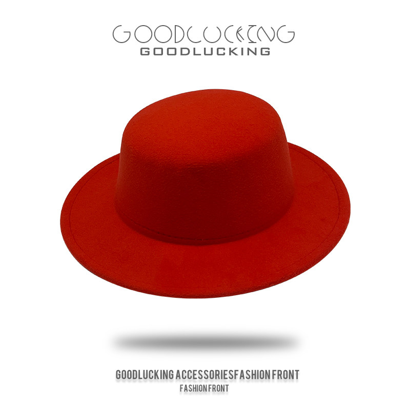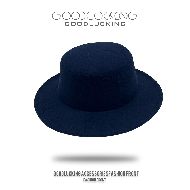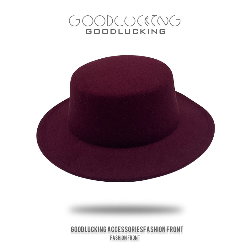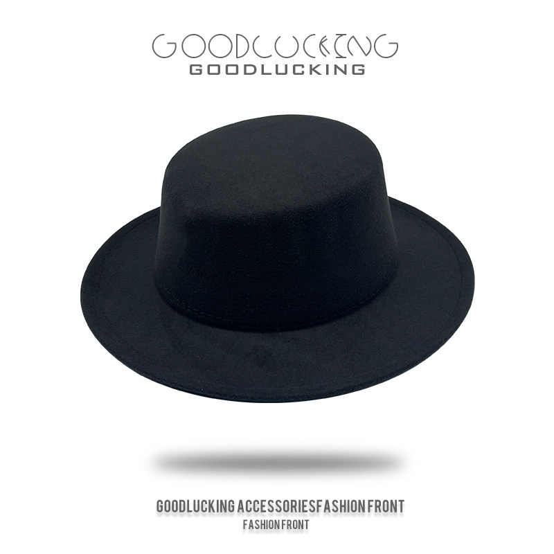 韩版大帽檐平顶礼帽黑色毛呢帽男士春秋英伦风爵士帽潮流毛毡帽女