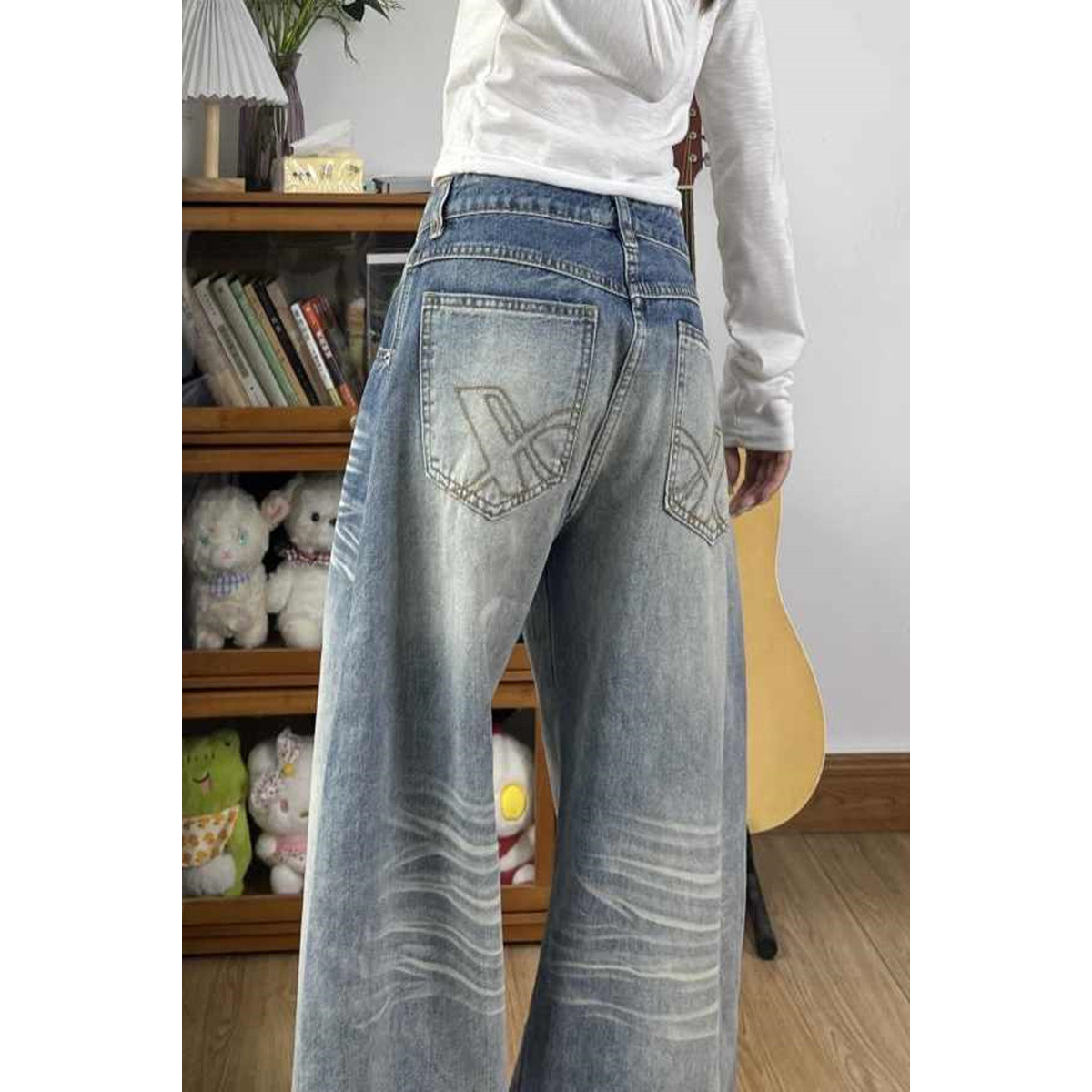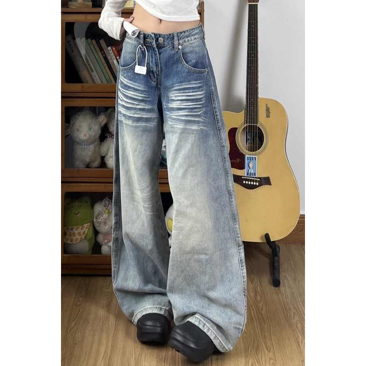 美式高街阔腿直筒牛仔裤女2025夏秋季新款高腰宽松显瘦拖地长裤子