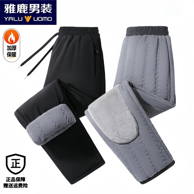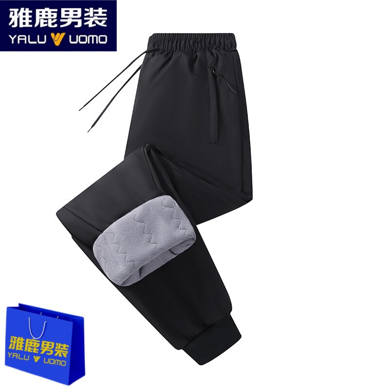 雅鹿男装冬季加绒加厚棉裤男女款宽松百搭防水加绒保暖御寒雪地裤