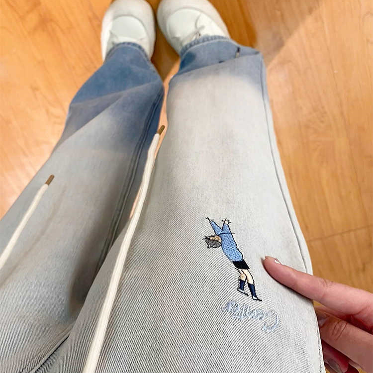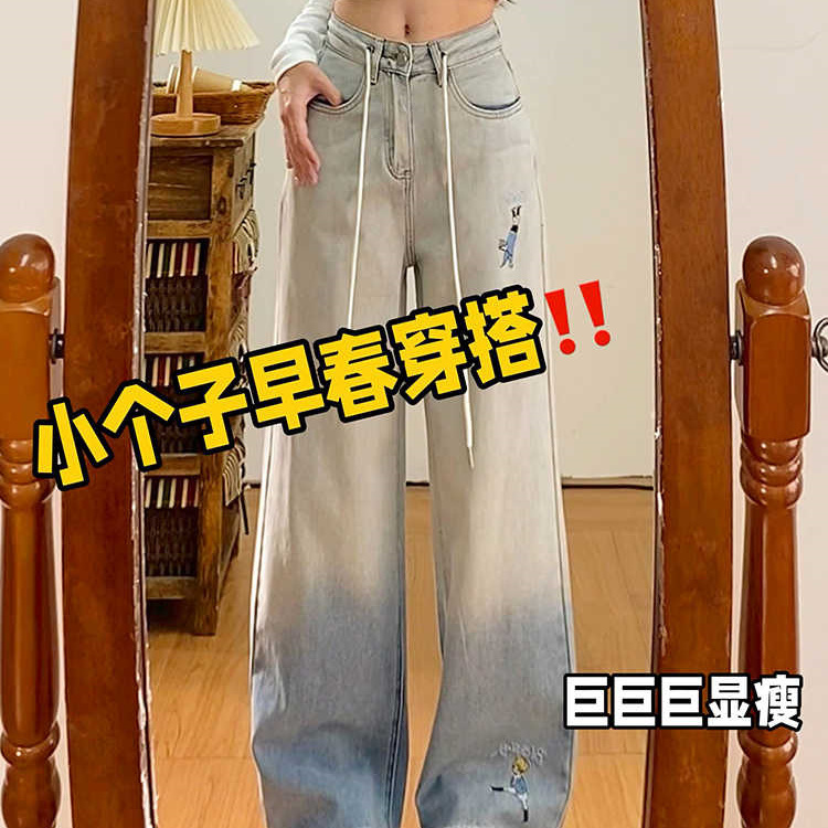 首页> 女装> 美式复古浅蓝渐变牛仔裤女2025夏秋季新款辣妹设计感阔腿拖地裤子