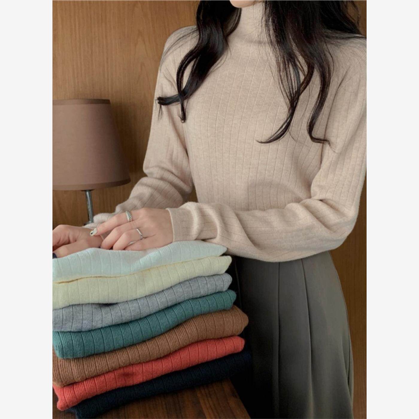 采购产品2025新的女底衬衫,秋冬半高领针织品,春季和秋季针织针