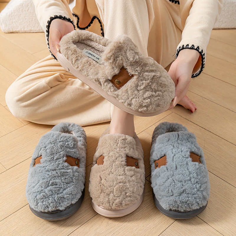 新品福利保暖加绒家居拖鞋厚底毛绒冬天棉拖鞋女外穿高级感防滑冬