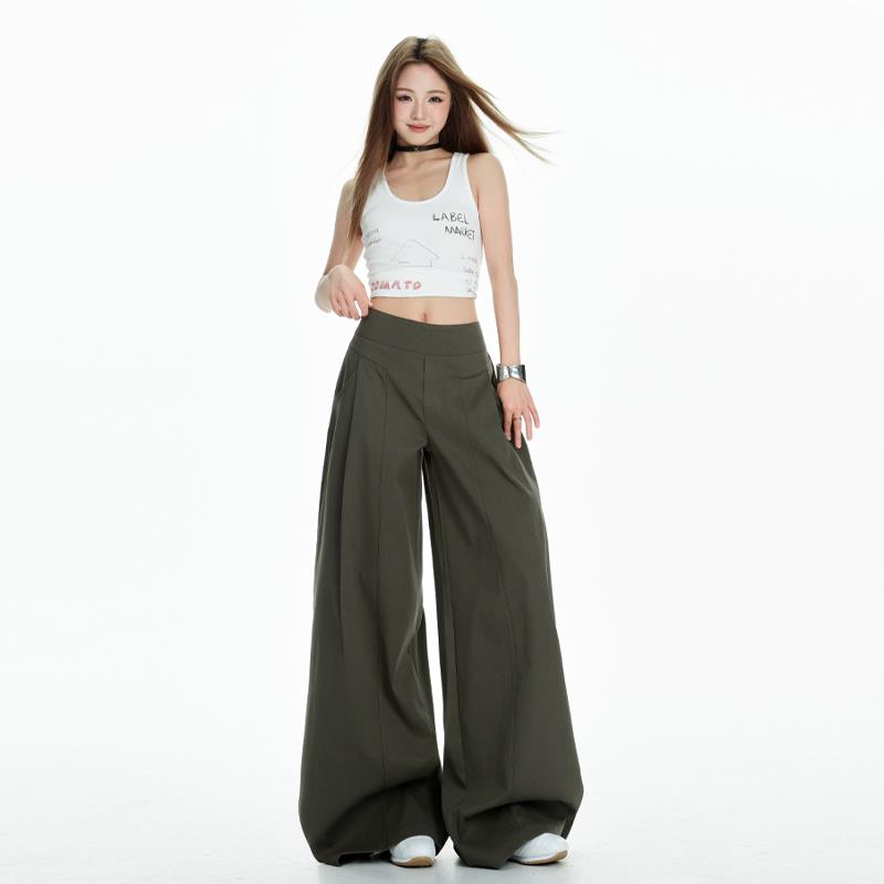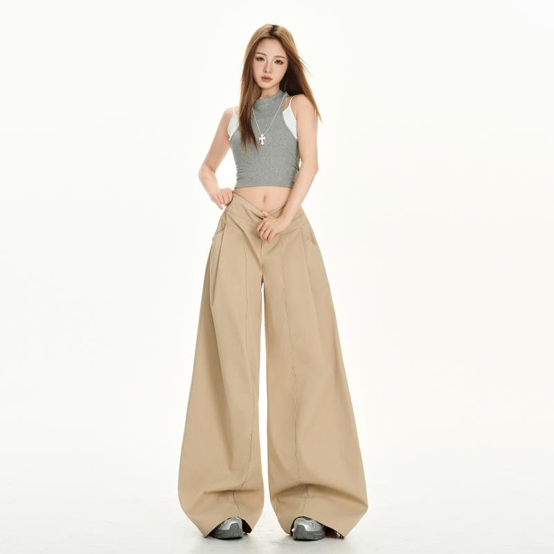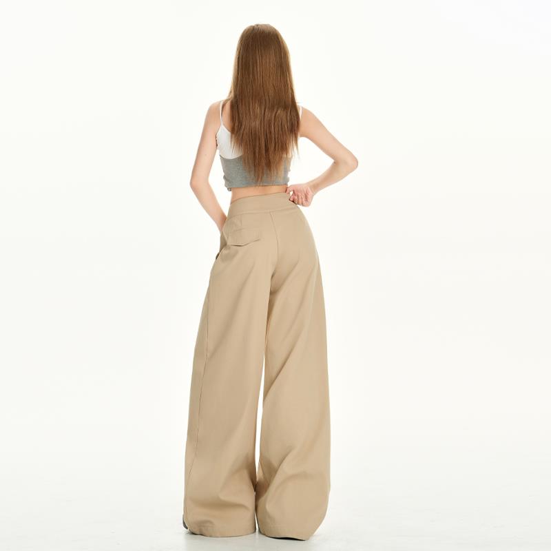 美式卡其色阔腿休闲裤女秋季2025新款慵懒风宽松垂感工装拖地裤子