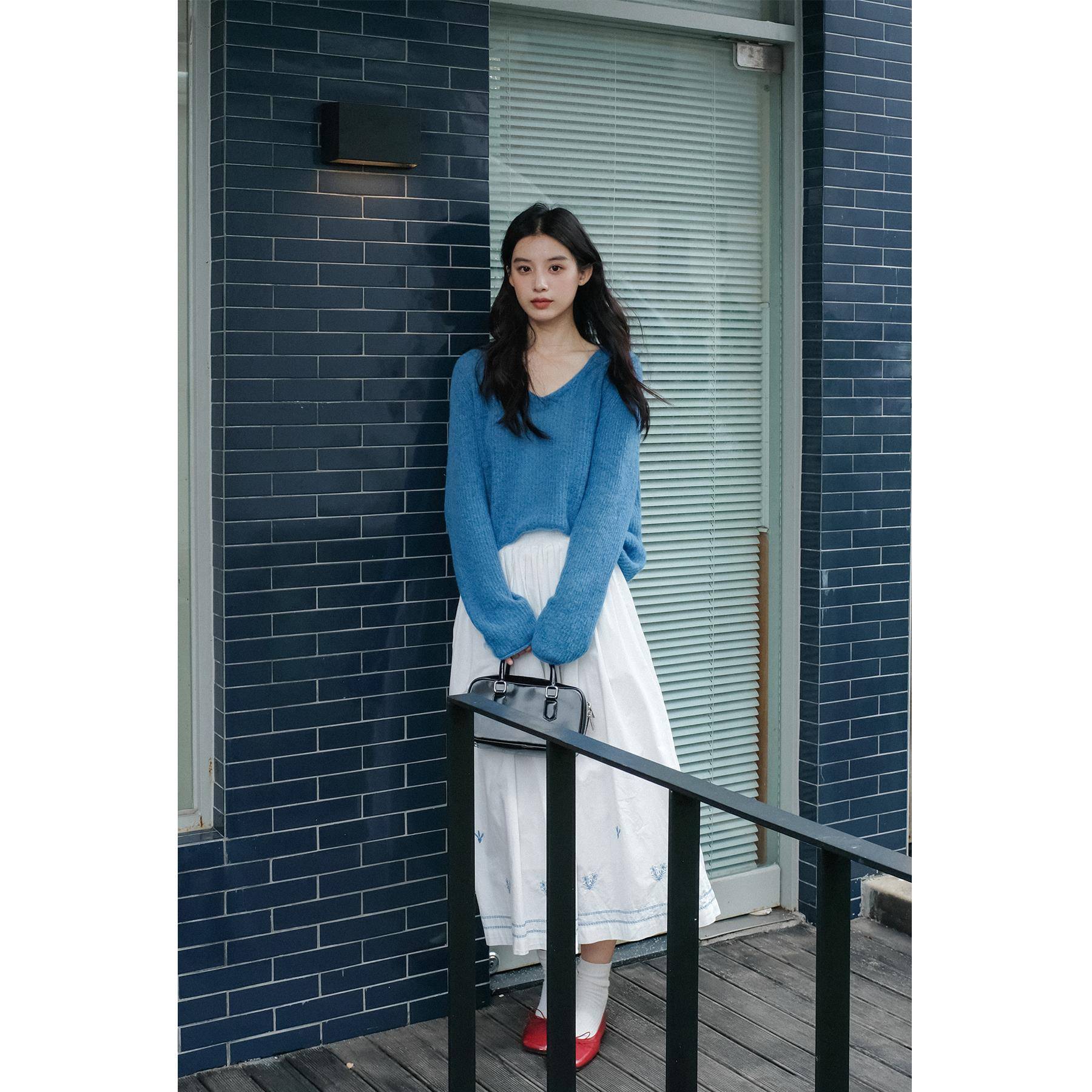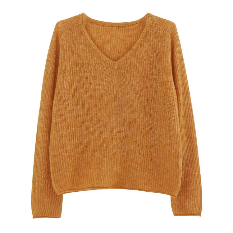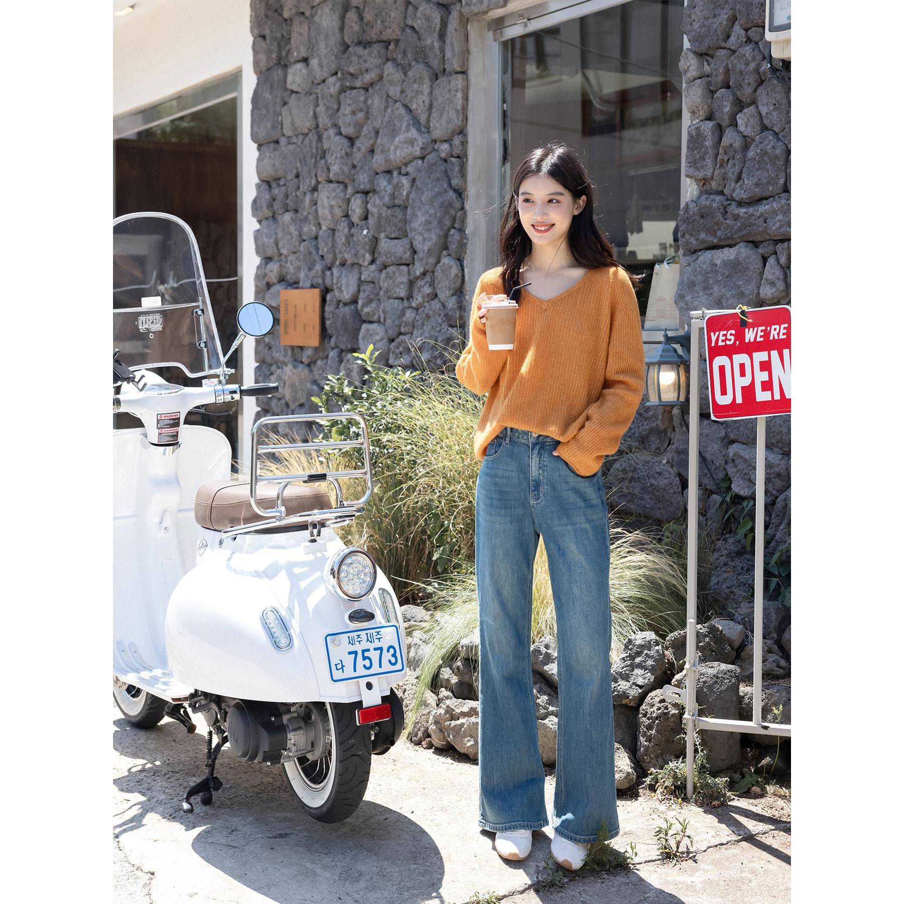 橘子小岛/美丽奴羊毛 软乎乎v领针织衫女慵懒毛衣早秋氛围感上衣