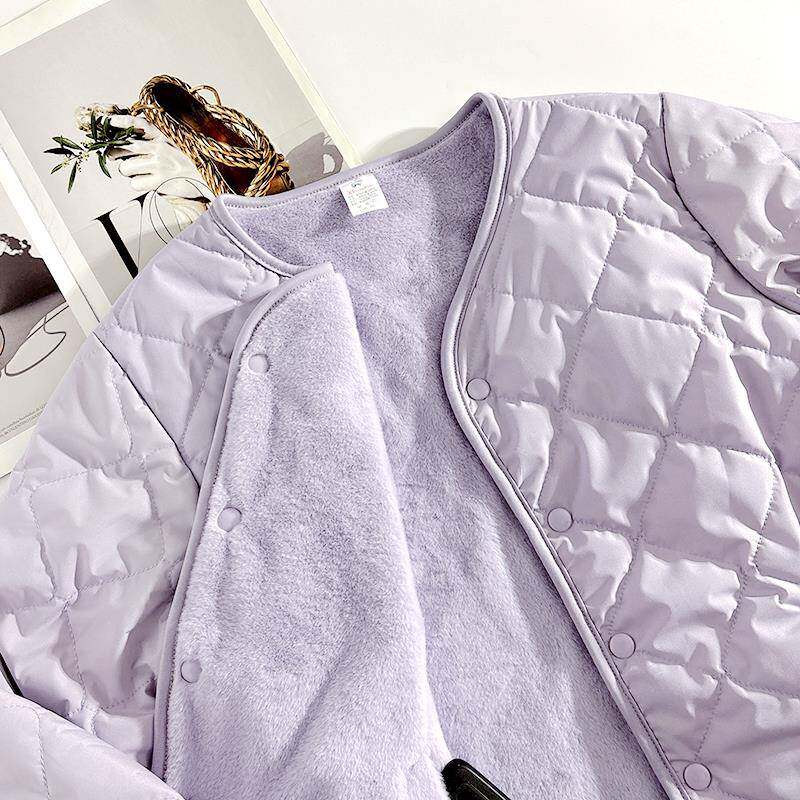 紫色内搭神器冬季加绒加厚棉衣女内胆保暖小棉袄双面穿棉服外套
