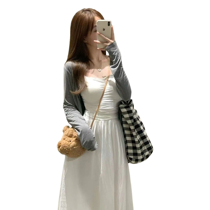 小个子白色吊带洋装女夏季2025新爆款独特漂亮穿搭配一整套装秋