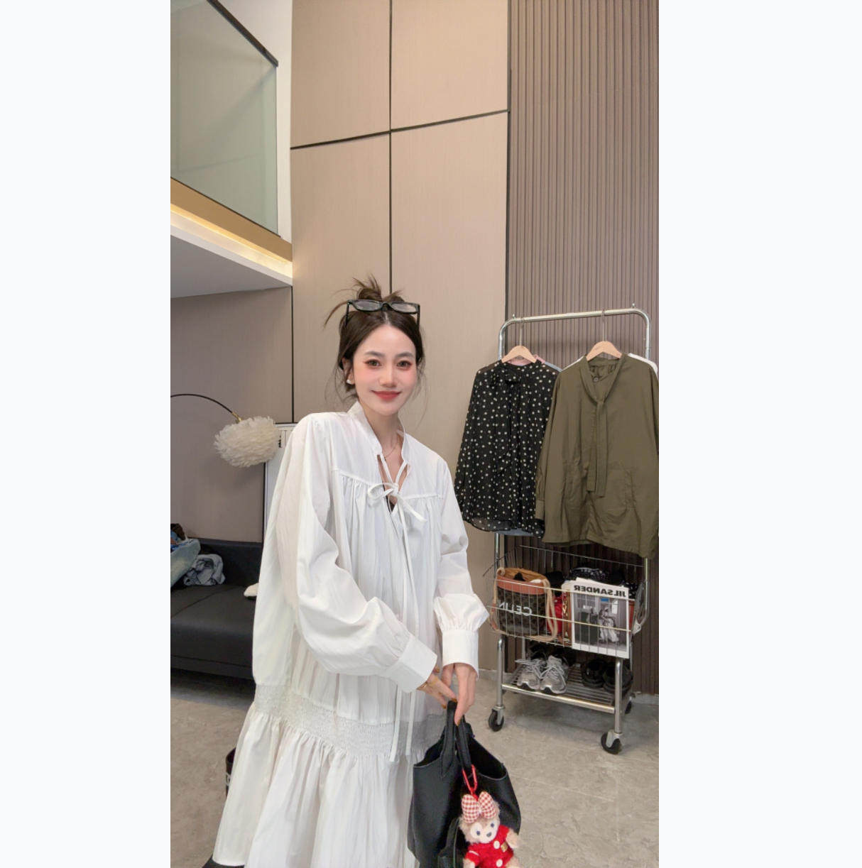 【元气上线】春款上新~设计款气质简约绑带宽松中长款长袖衬衫裙
