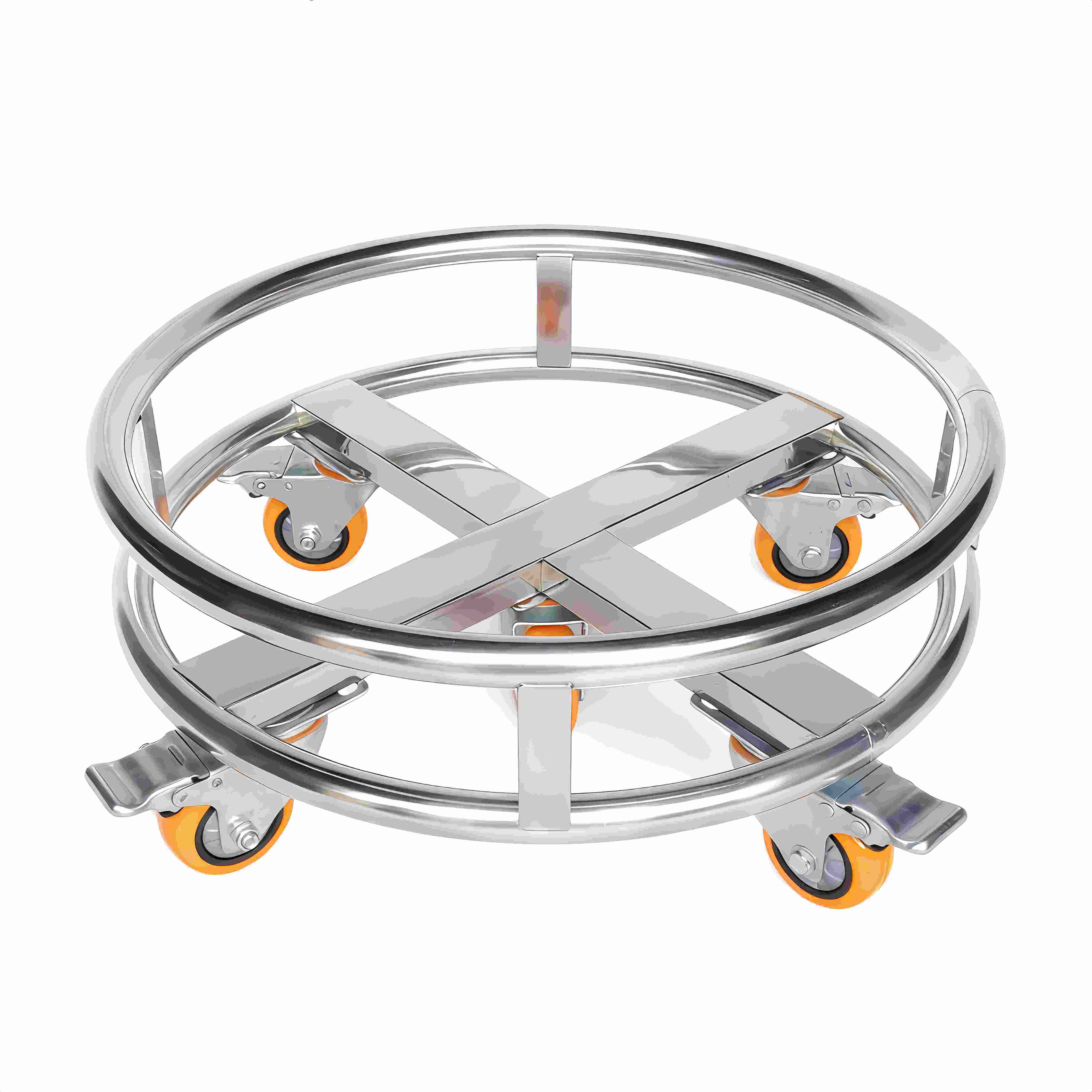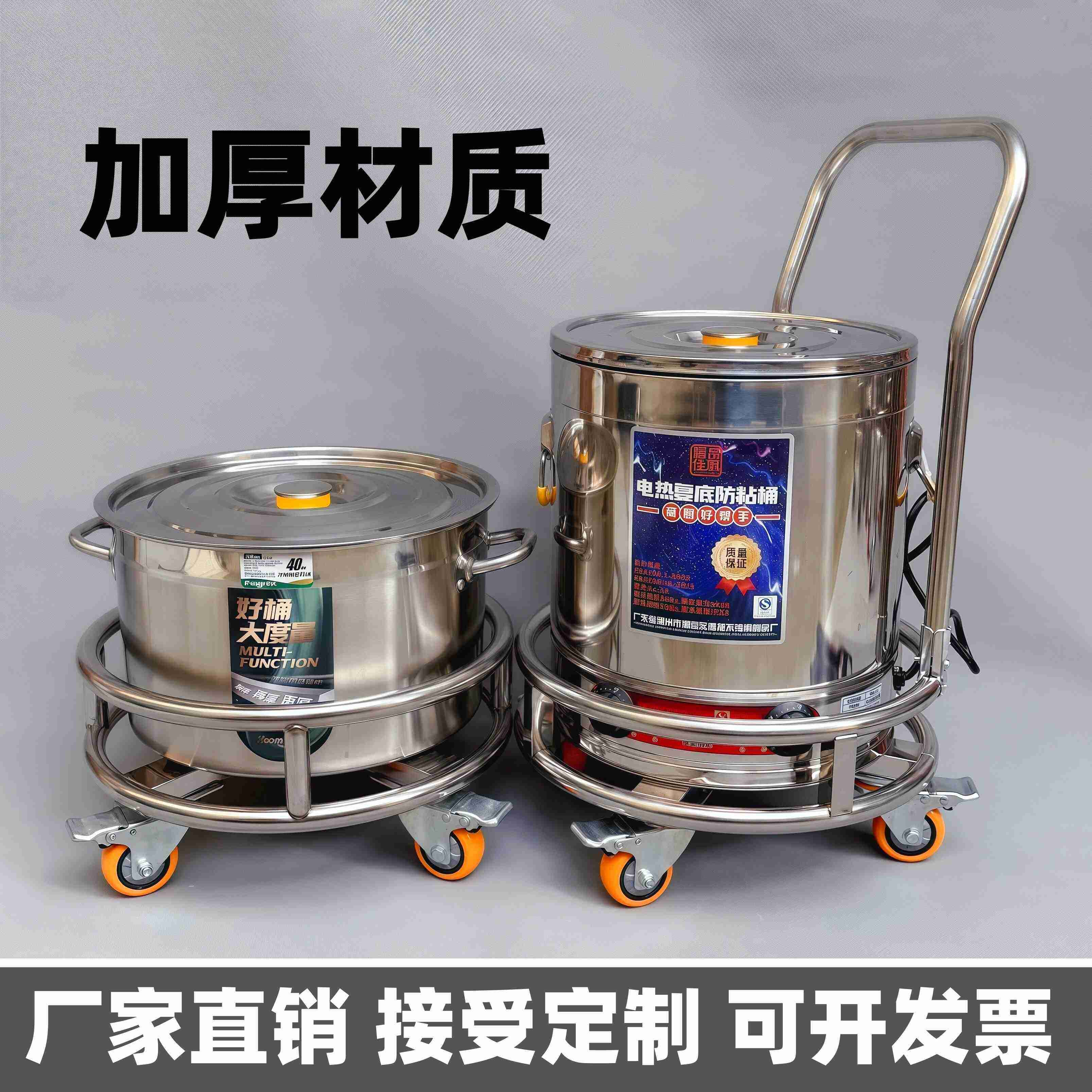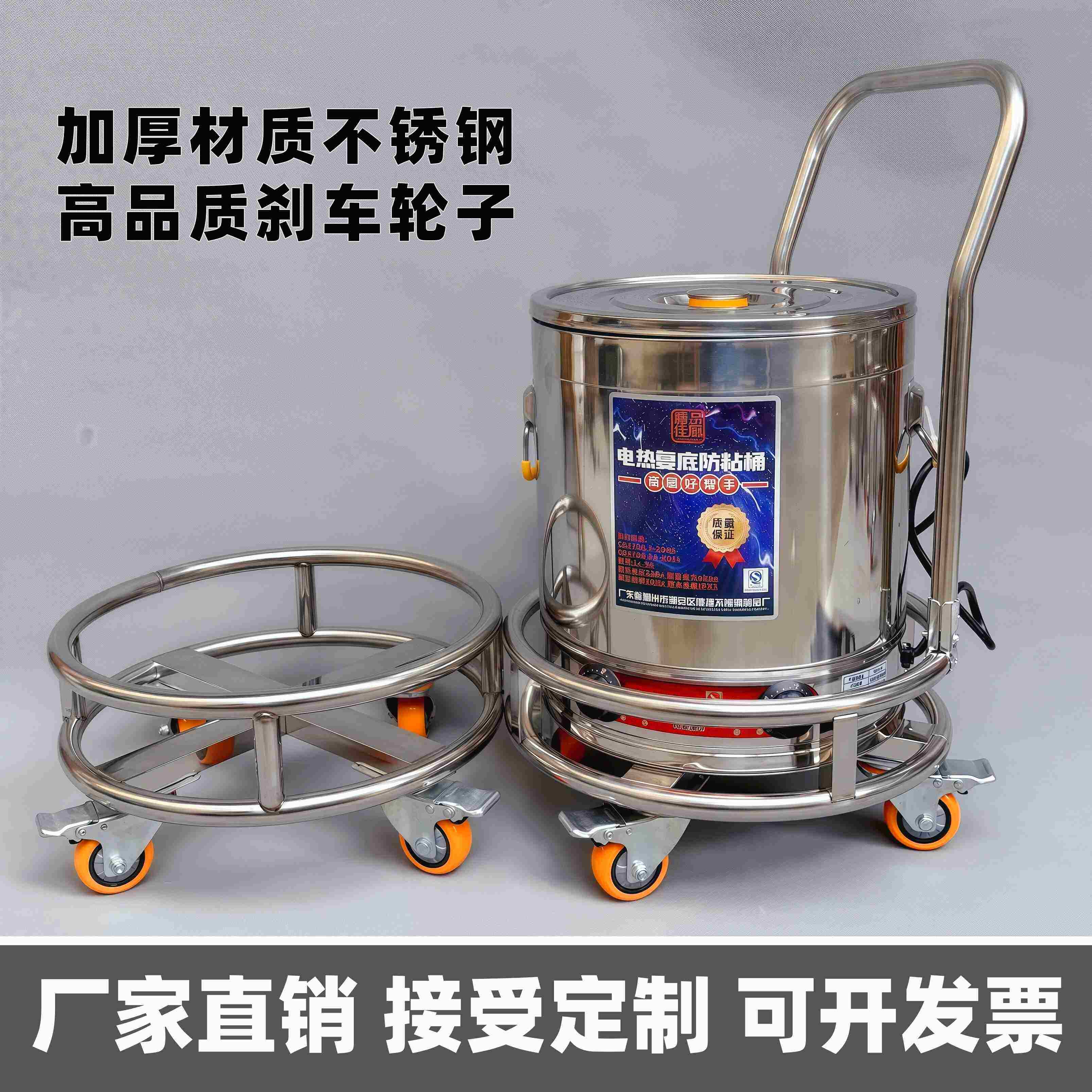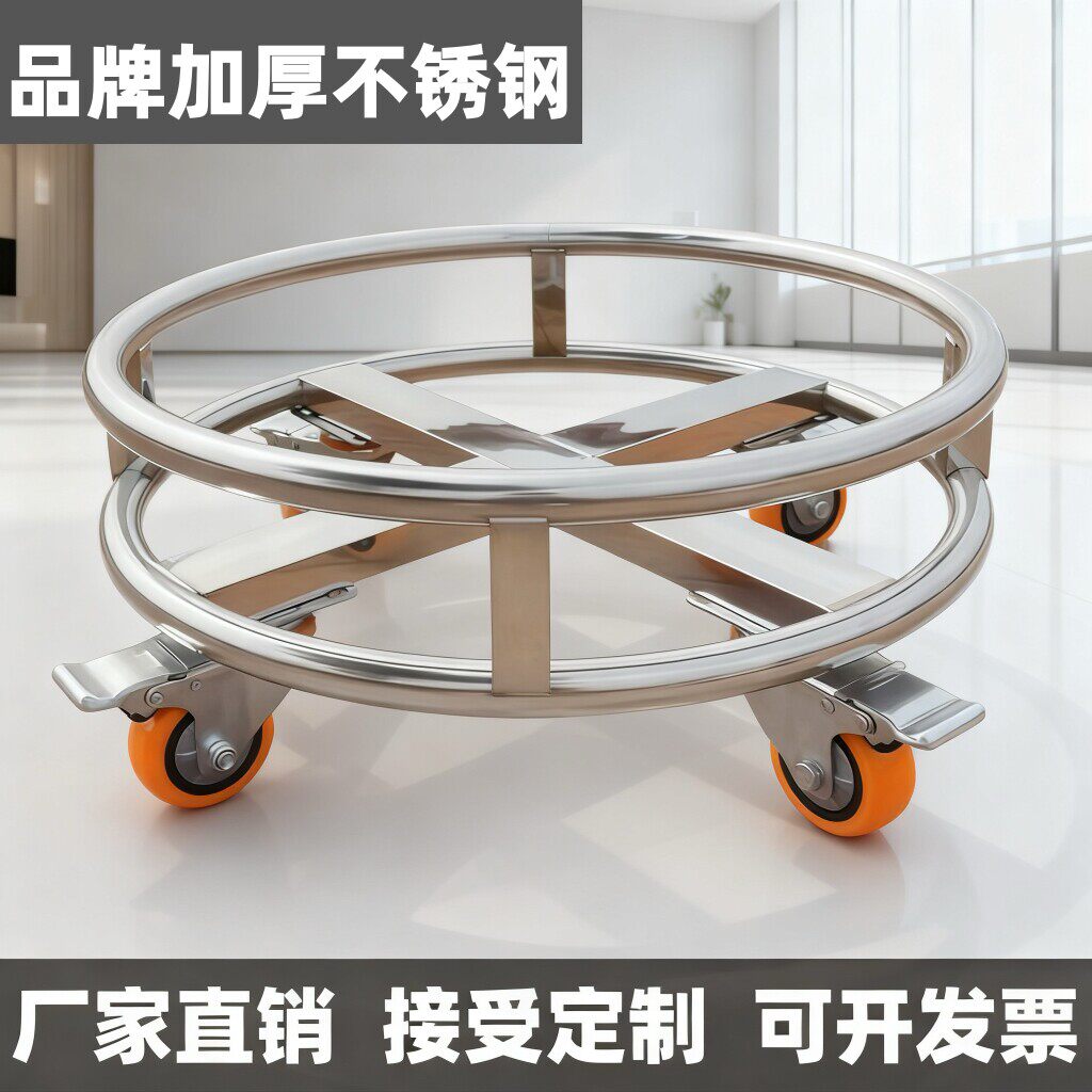 定制加厚不锈钢手推周转车汤桶架移动车保温桶带轮子圆形花盆底座