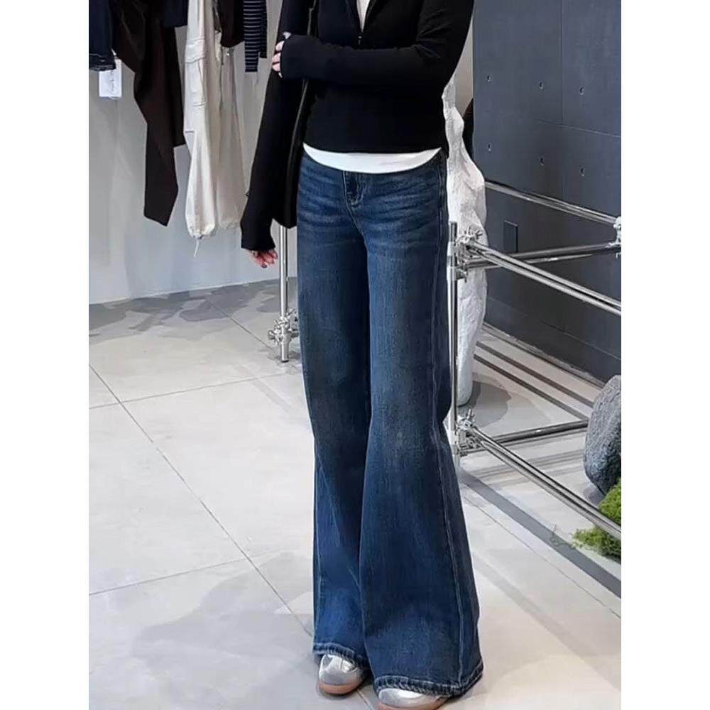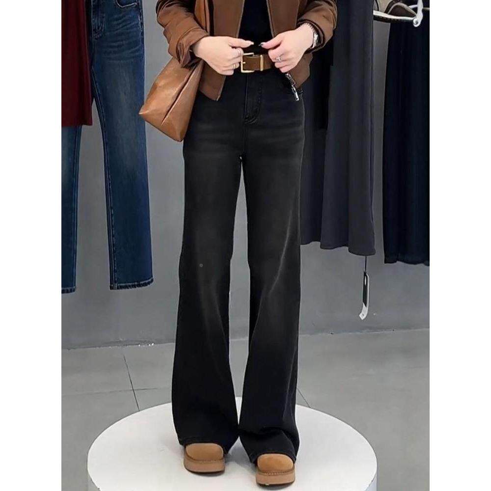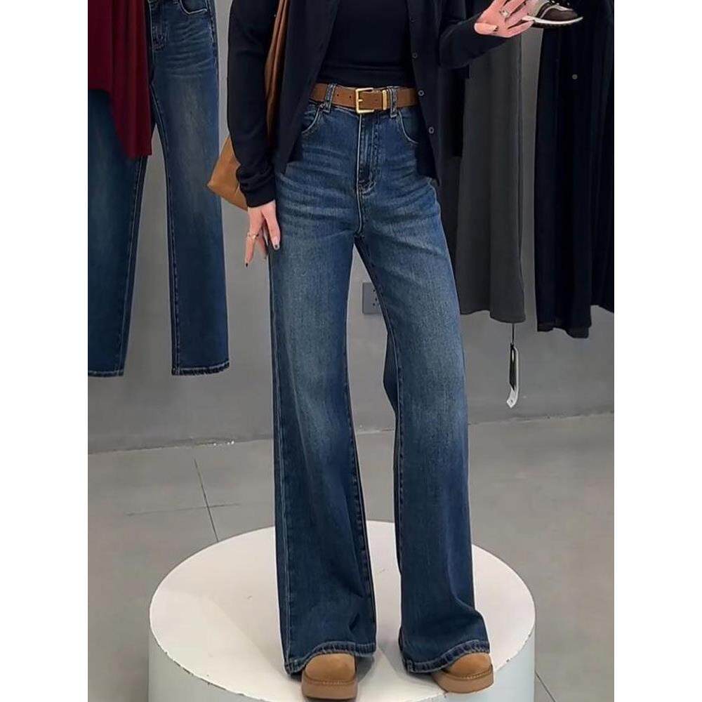 大女装0225FMB年春季高腰弹喇力微牛仔裤胖mm显瘦显腿长直筒阔腿
