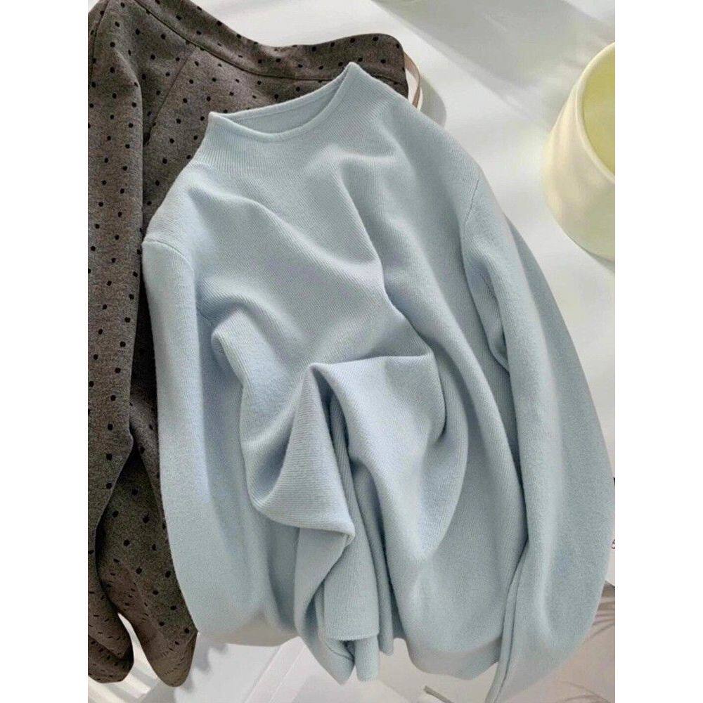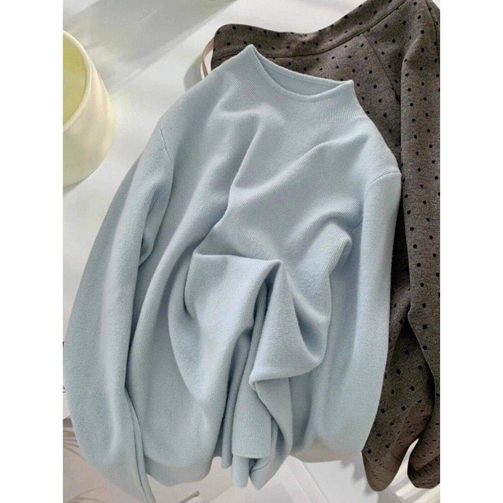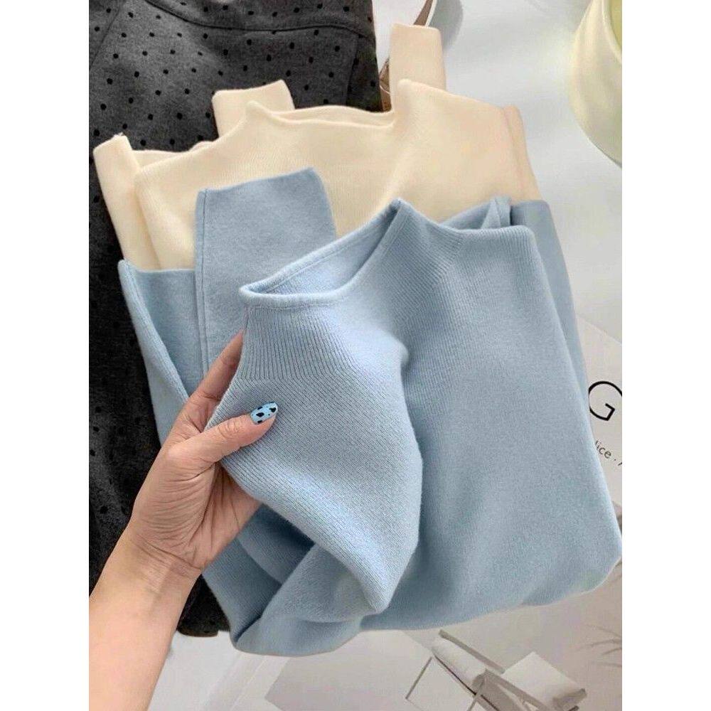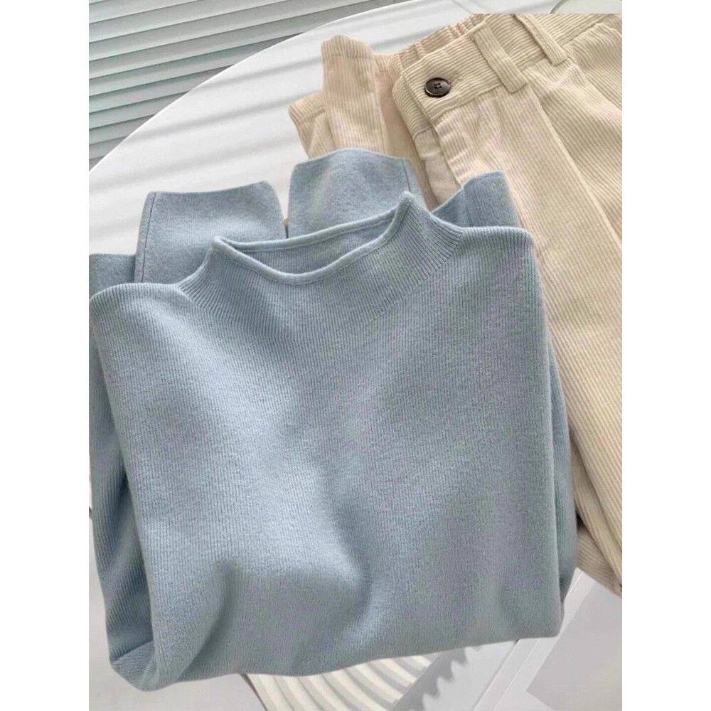 独特奶蓝色打底衫半高领内搭女秋冬2025款显白超好看针织毛衣上衣