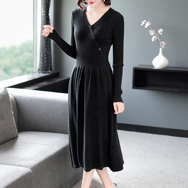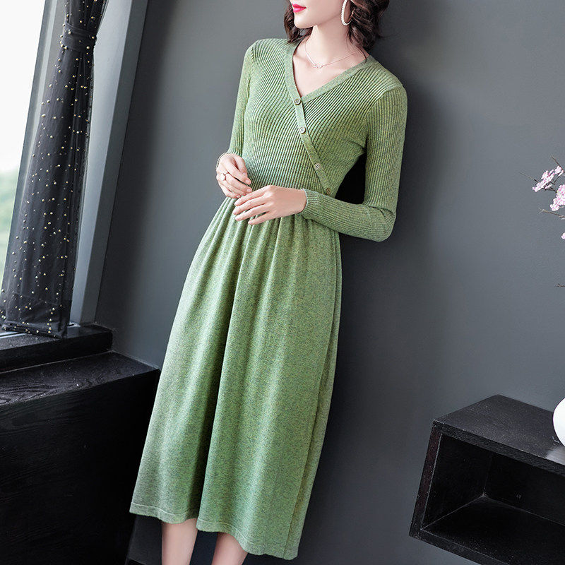 奈昕让您穿着漂亮个性化私人订制 62821连衣裙毛针织收腰长袖修身